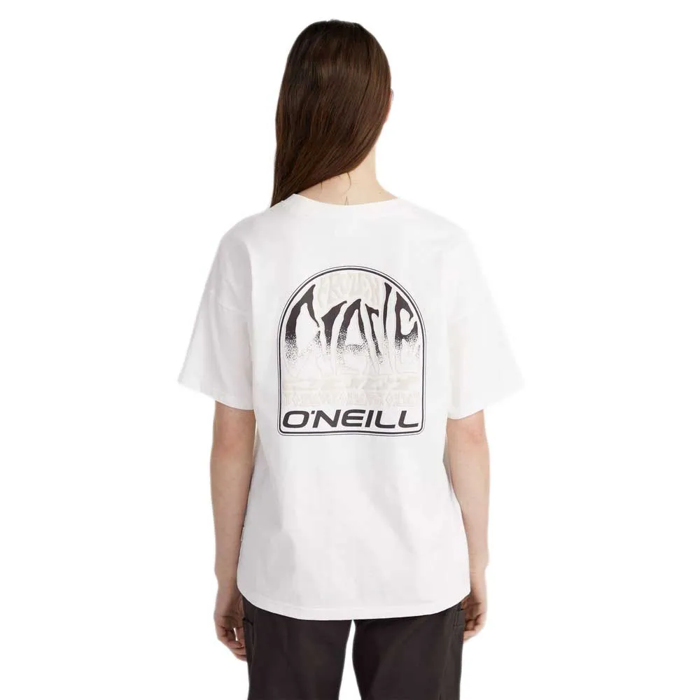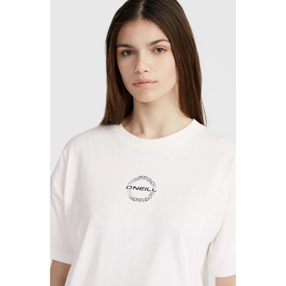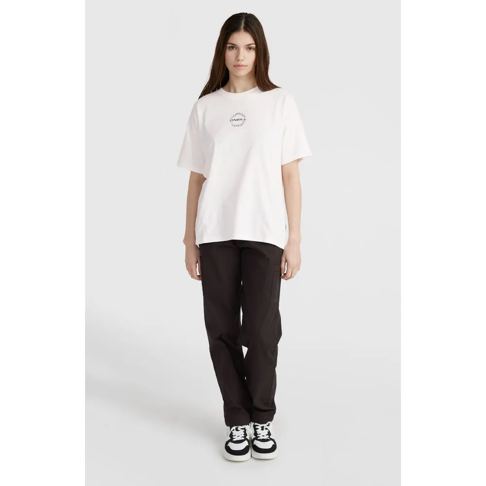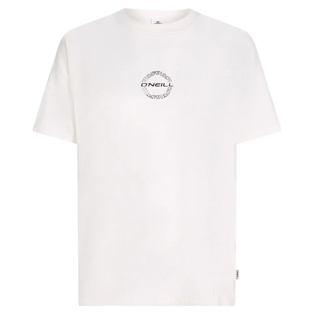 Свободная футболка с принтом на спине выполнена из 100% хлопковой ткани средней плотности и имеет классический круглый вырез.