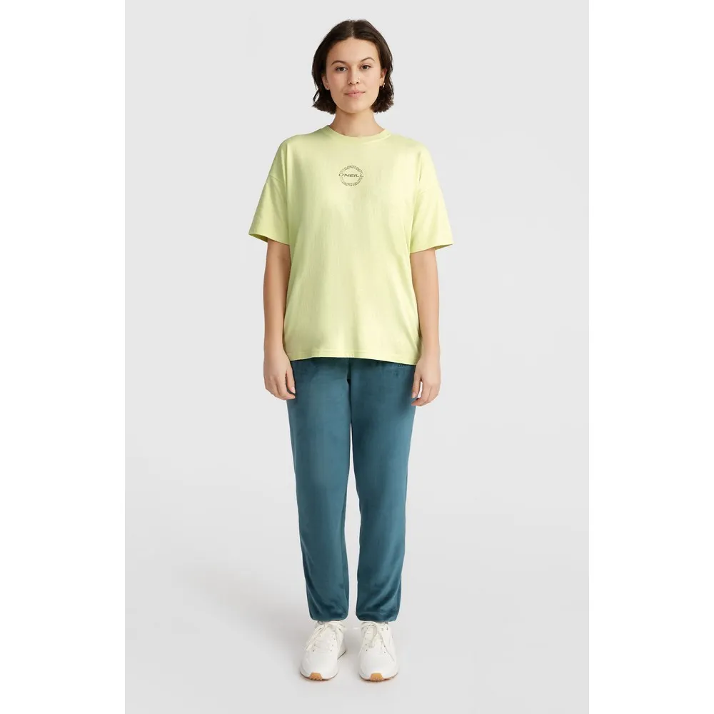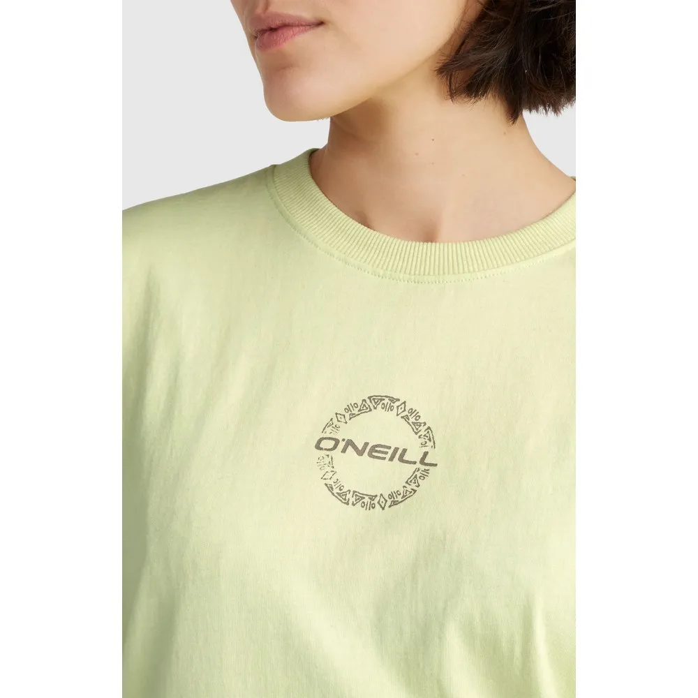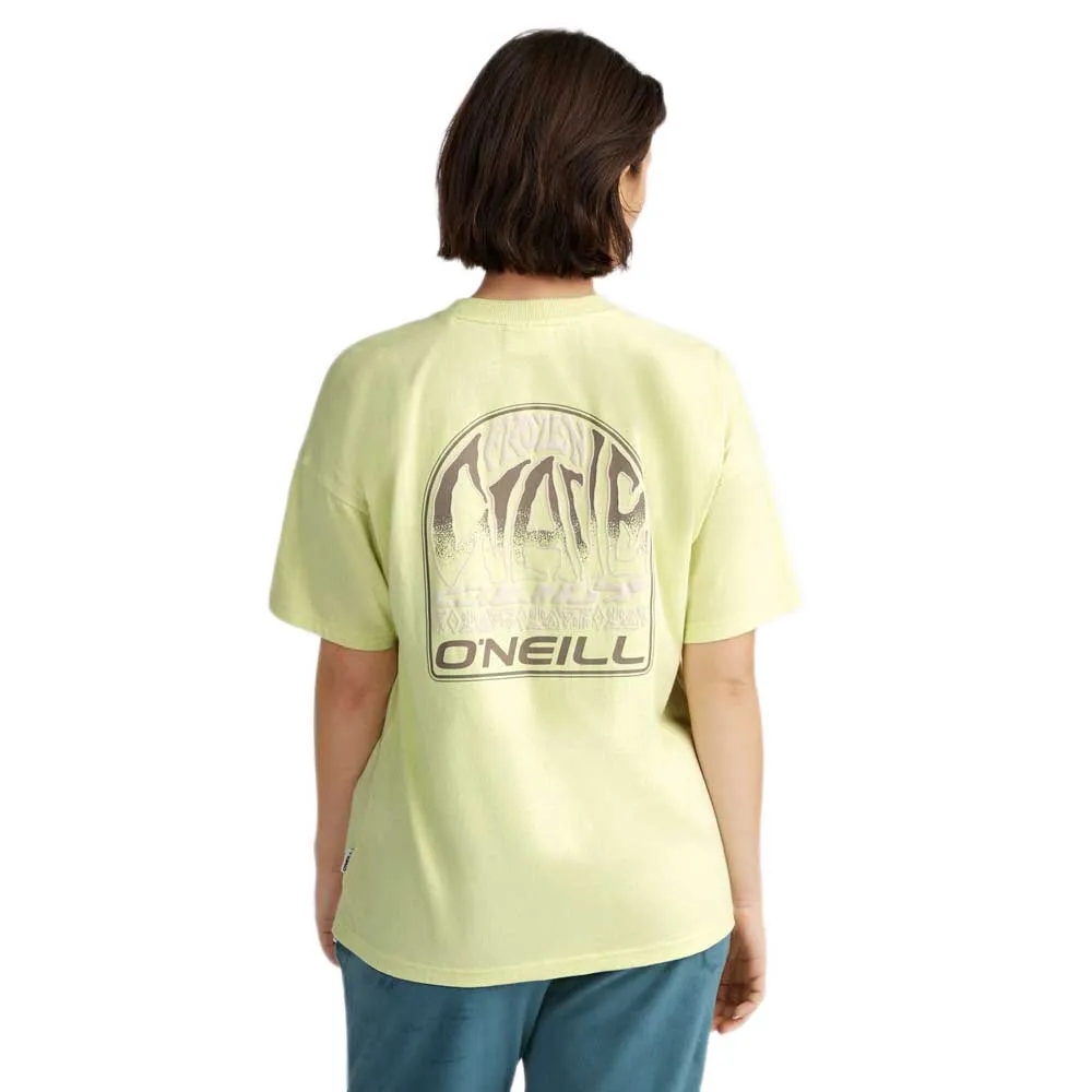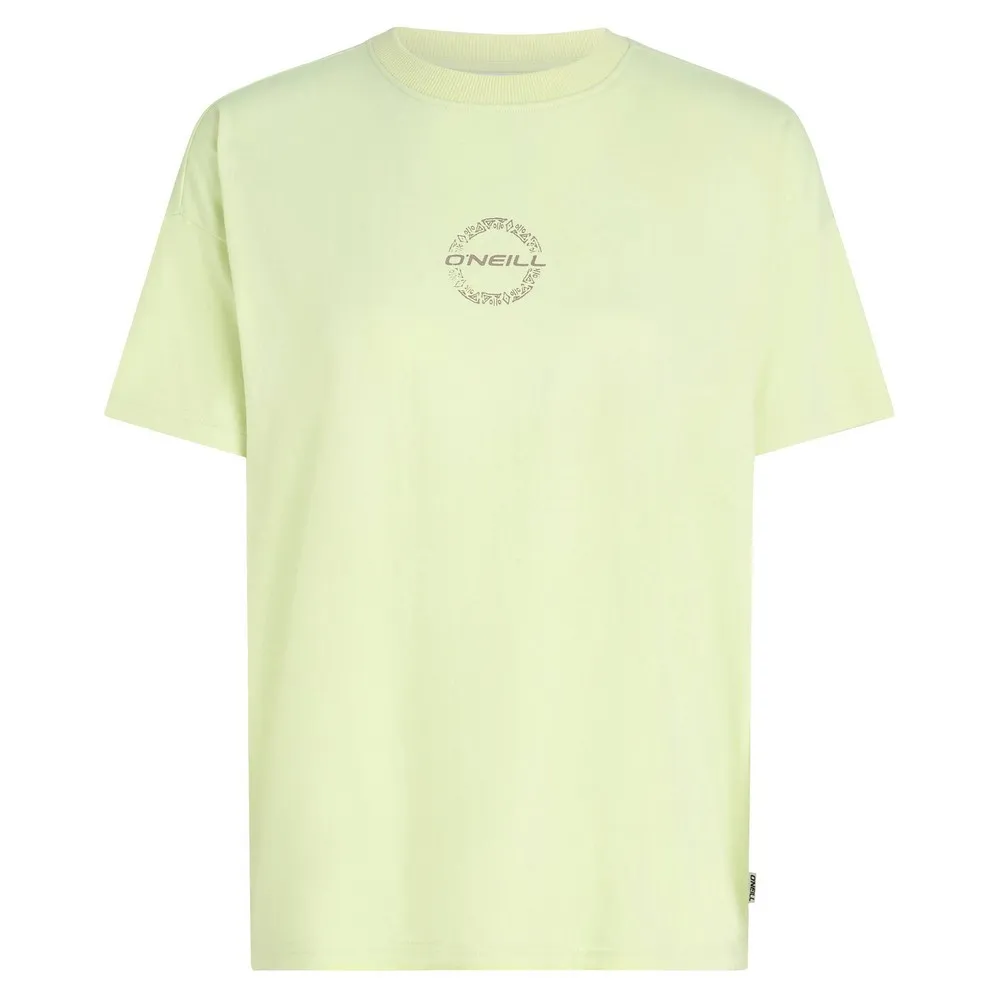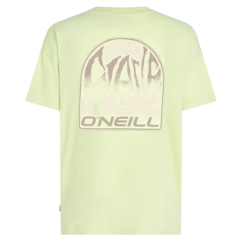 Свободная футболка с принтом на спине выполнена из 100% хлопковой ткани средней плотности и имеет классический круглый вырез.