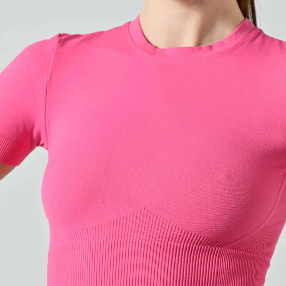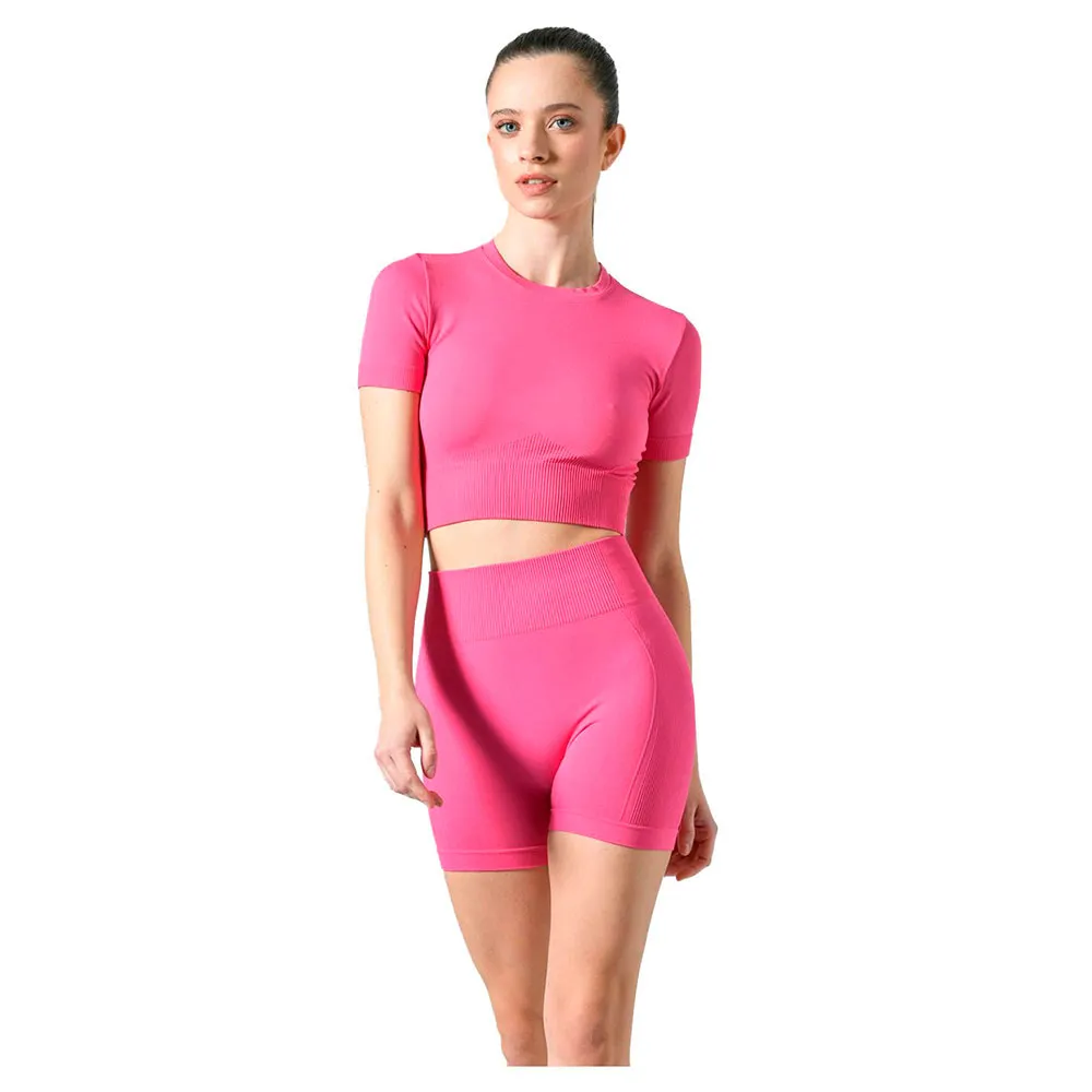 Топ из эластичной микрофибры с короткими рукавами и ребристыми деталями.