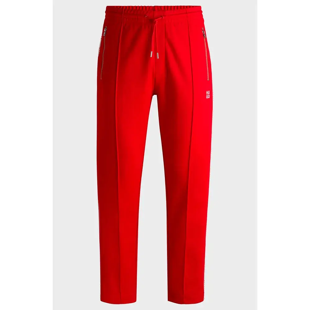 Вдохновленные винтажным стилем, спортивные брюки HUGO Menswear украшены клетчатой тесьмой, складками и металлической отделкой. Свободный крой, хлопковая смесь, карманы на молнии.