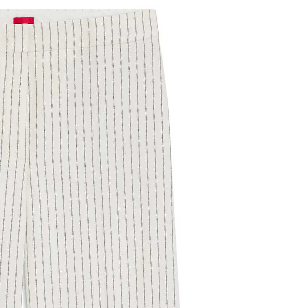 Классические брюки от HUGO Womenswear. Ткань в тонкую полоску с эластичностью для комфорта. Эта пара прямого кроя создаст современный классический ансамбль с подходящим пиджаком.