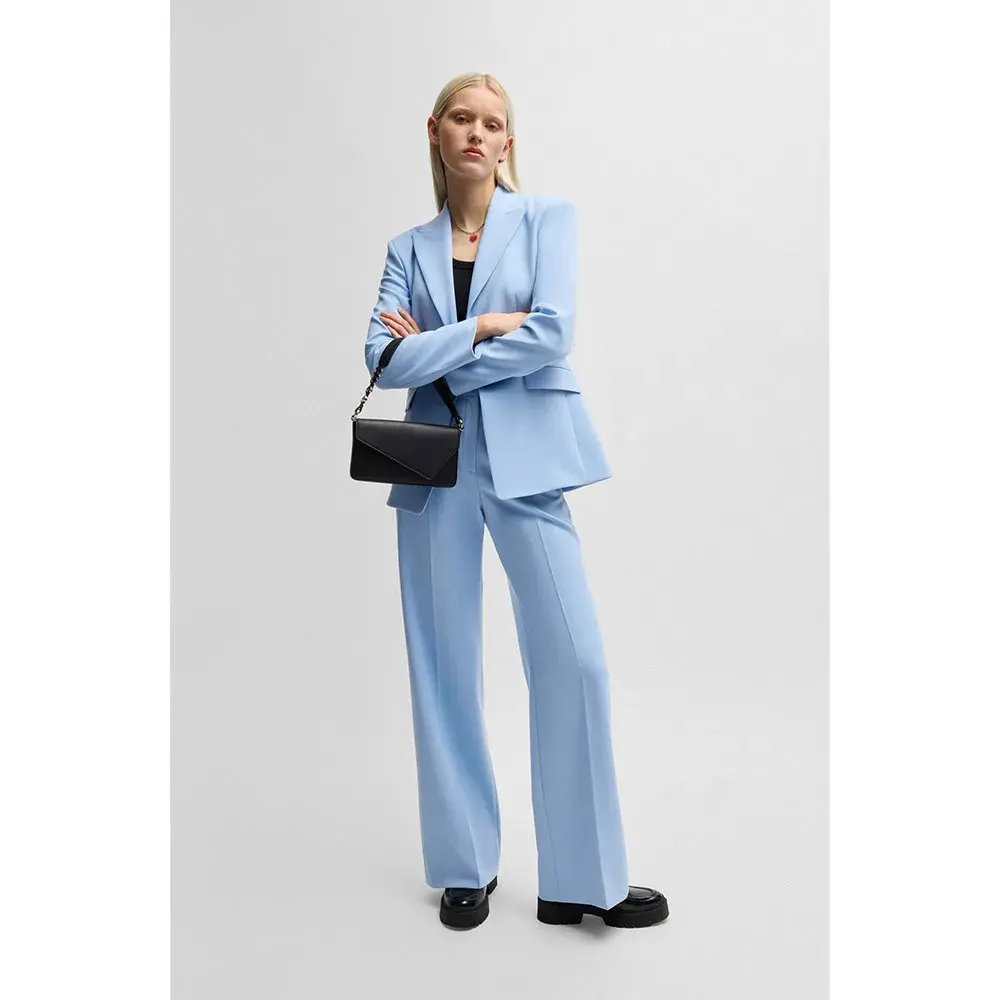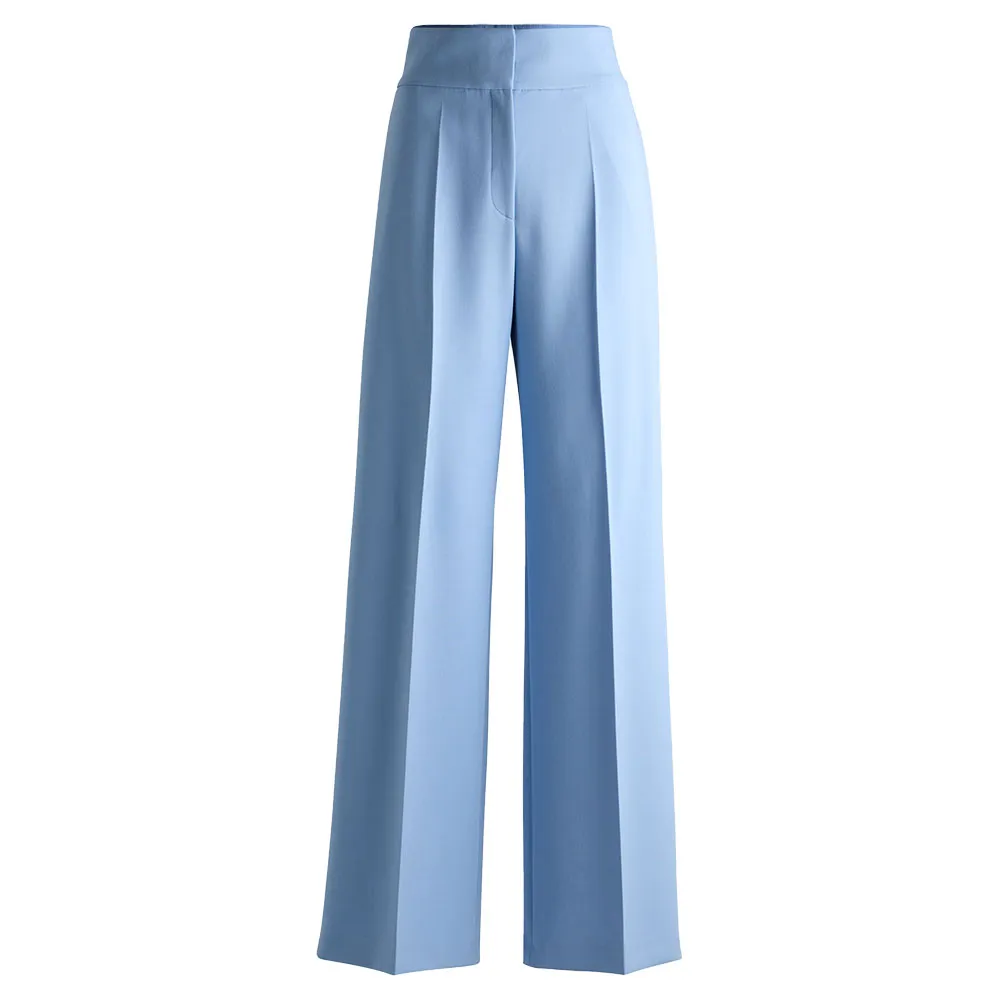 Адаптивные брюки от HUGO Womenswear, стандартной посадки из эластичной ткани с расклешенными штанинами, высокой талией и карманами в боковых швах.