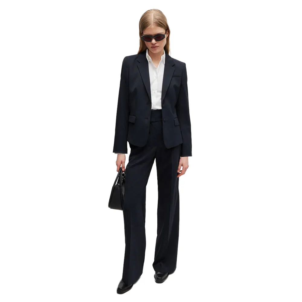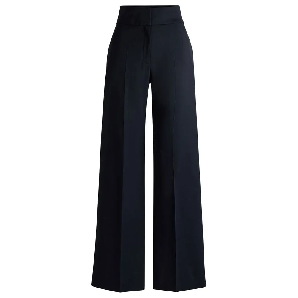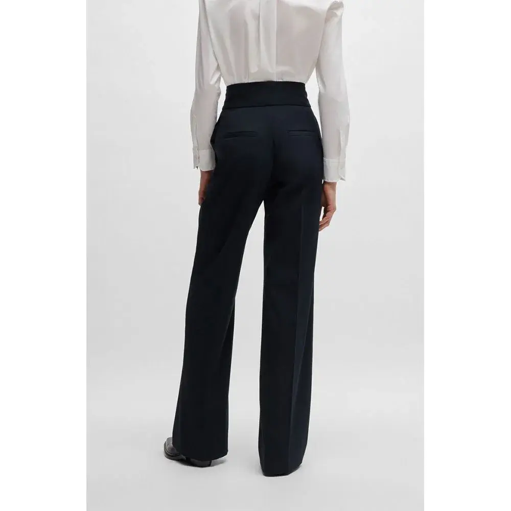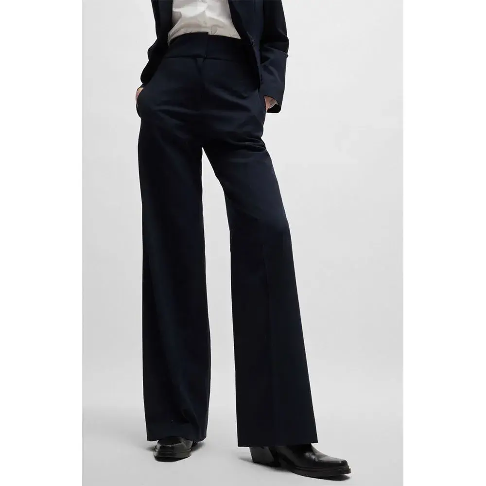 Универсальные брюки классического кроя от HUGO Womenswear. Эта пара с высокой талией изготовлена из смеси натуральной шерсти и эластичной ткани для удобства, а расклешенные штанины обеспечивают комфорт.