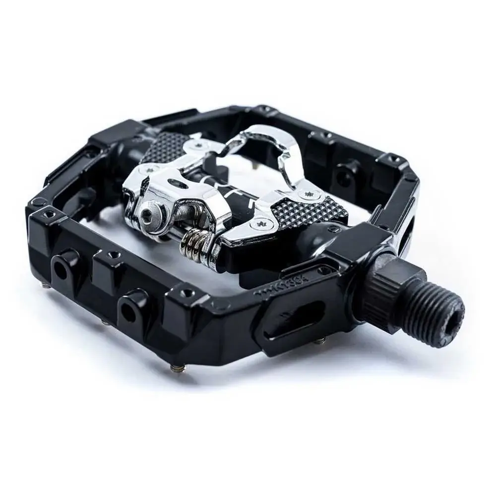 Эта плоская педаль с системой одностороннего нажатия совместима с SPD и устанавливается на ось CrMo, обработанную ЧПУ. Сменные противоскользящие штифты обеспечивают идеальное сцепление с велосипедом.
