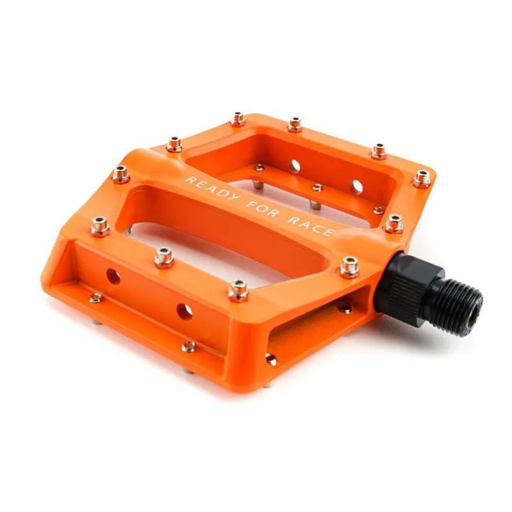 Эти легкие алюминиевые плоские педали устанавливаются на ось CrMo. Нескользящие штифты можно менять, они обеспечивают наилучшее сцепление с велосипедом.