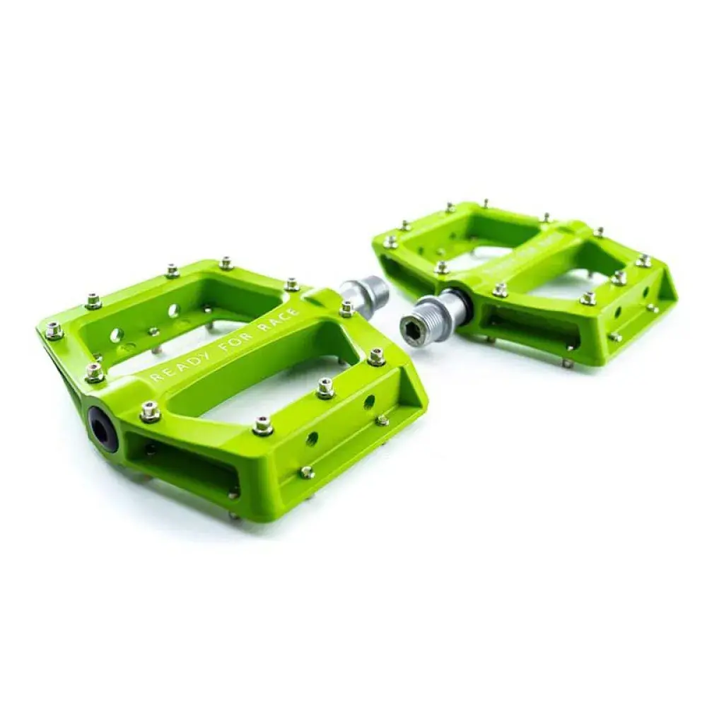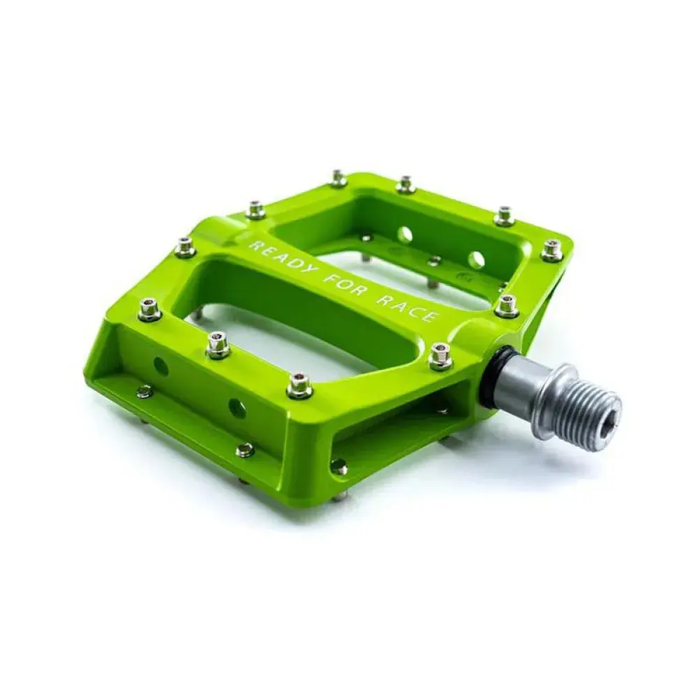Эти легкие алюминиевые плоские педали устанавливаются на ось CrMo. Педали установлены на высококачественных подшипниках. Нескользящие штифты можно менять, они обеспечивают наилучшее сцепление с велосипедом.