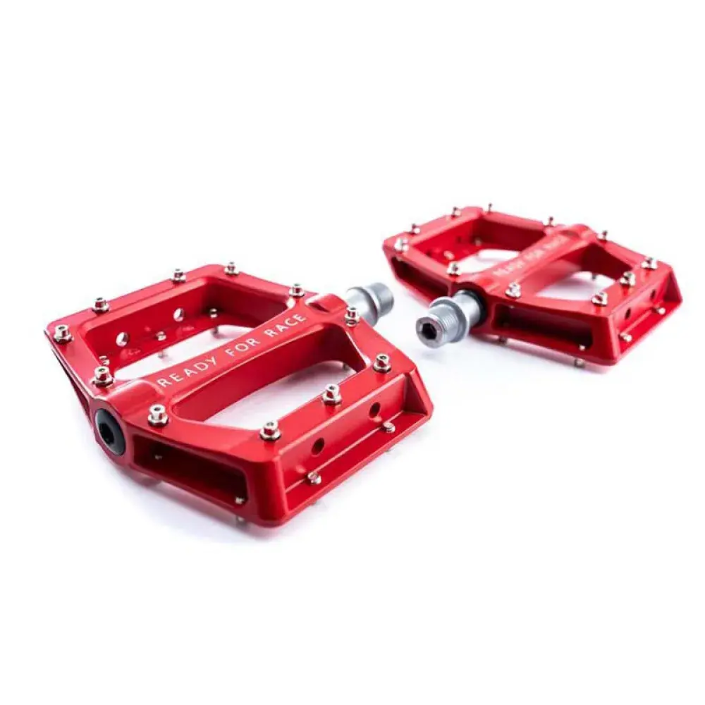 Эти легкие алюминиевые плоские педали устанавливаются на ось CrMo. Педали установлены на высококачественных подшипниках. Нескользящие штифты можно менять, они обеспечивают наилучшее сцепление с велосипедом.
