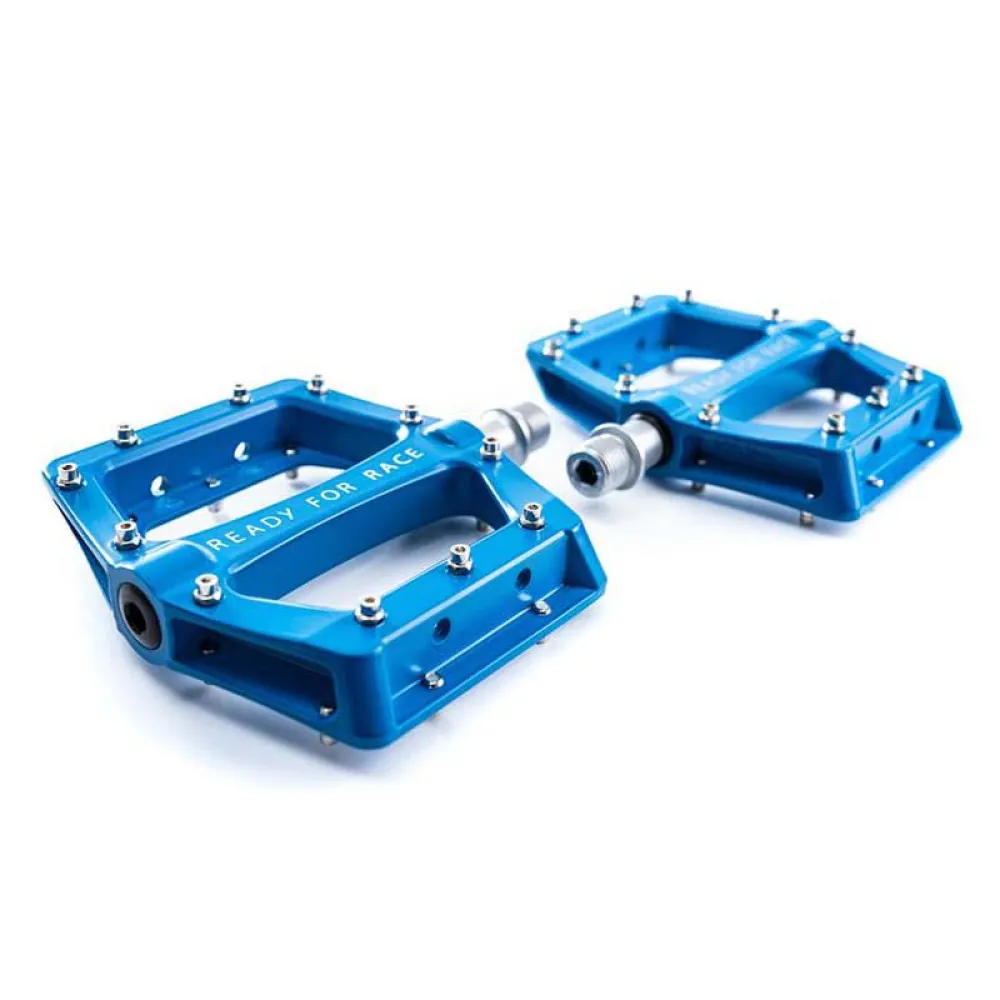 Эти легкие алюминиевые плоские педали устанавливаются на ось CrMo. Педали установлены на высококачественных подшипниках. Нескользящие штифты можно менять, они обеспечивают наилучшее сцепление с велосипедом.