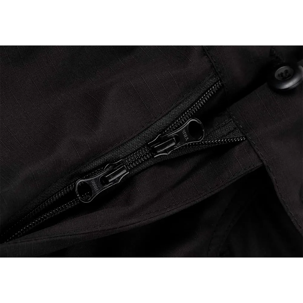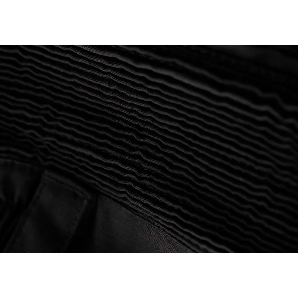 Спереди мы видим высококачественную молнию YKK с застежкой на липучке. Ремешок проходит вокруг внутреннего пояса для регулировки его размера. Аналогичные ремешки расположены вокруг лодыжек для регулировки посадки по обуви пользователя. Большие шлевки для ремня позволяют использовать широкий спектр тактических ремней.