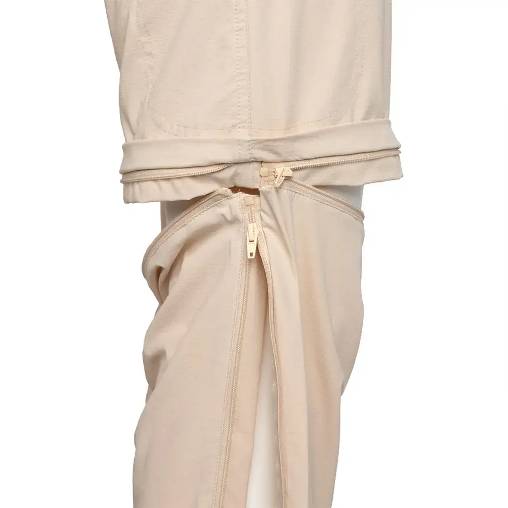 Они полностью съемные для адаптации к любой погоде, оснащены карманами на молнии, предварительно сформированными коленями и регулируемым подолом.