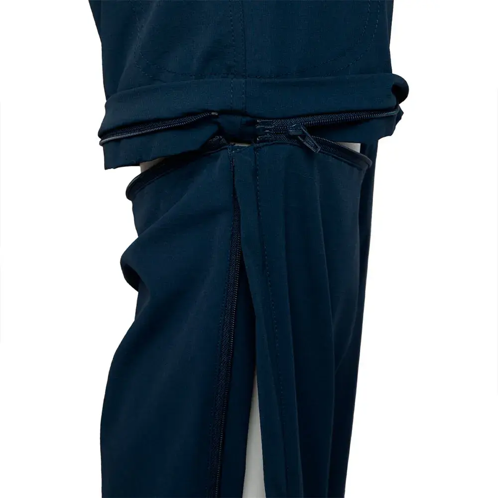 Они полностью съемные для адаптации к любой погоде, оснащены карманами на молнии, предварительно сформированными коленями и регулируемым подолом.
