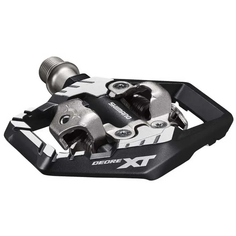 Педаль SHIMANOs DEORE XT PD-M8120 trail отличается повышенной жесткостью и устойчивостью для неровных трасс и агрессивной езды. Более широкая и удлиненная зона контакта обеспечивает эффективную передачу мощности и улучшенное управление велосипедом. Встроенный каркас педалей защищает крепления от ударов и служит направляющей для более легкого задействования.