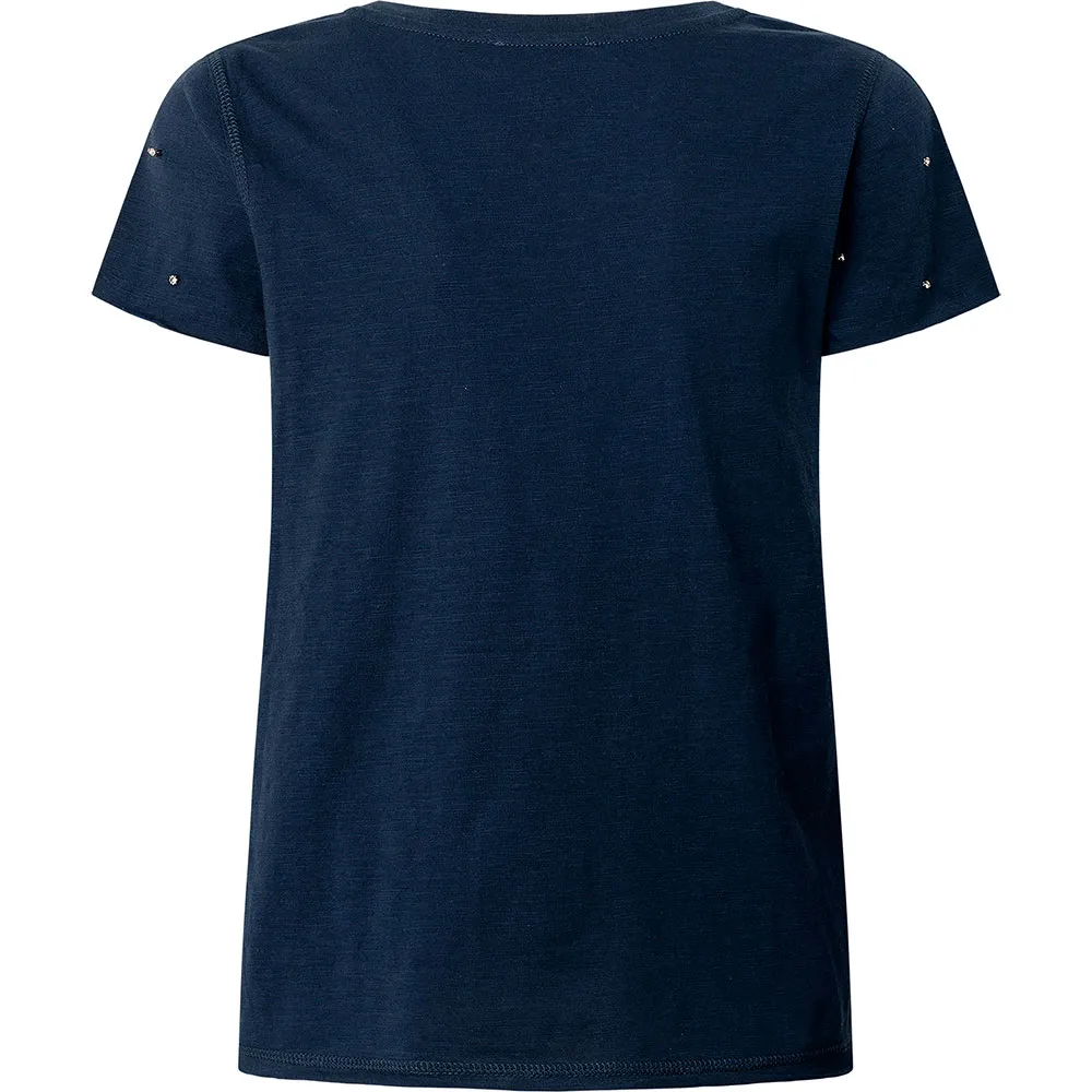 Футболка с короткими рукавами и V-образным вырезом, украшенная кристаллами по всему изделию, с вышитым логотипом по подолу.
