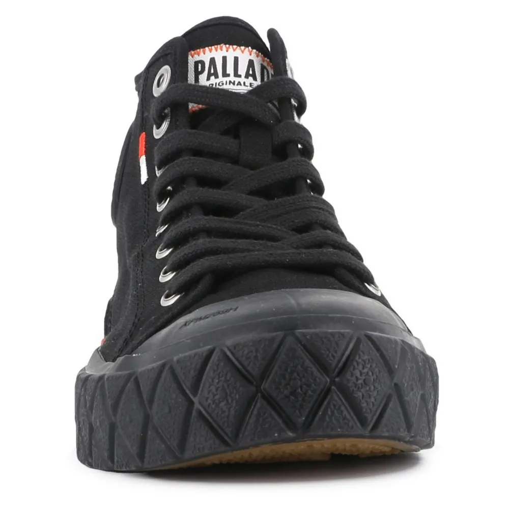 Увеличенная ромбовидная подошва отсылает к ромбовидной полосе наших культовых ботинок Pampa, а трехцветный флаг сбоку — яркое напоминание о французской истории бренда.