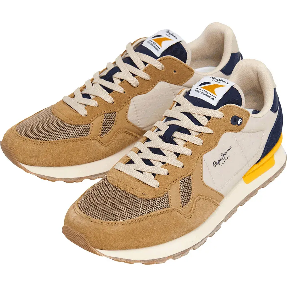 Беговые ретро-кроссовки Brit Camp M с комбинированными материалами и цветами, съемной термоформованной стелькой, удобной промежуточной подошвой из ЭВА, резиновой подошвой, фирменным стабилизатором, культовым боковым изотипом, логотипом 1973 года на пятке и классическим боковым логотипом.