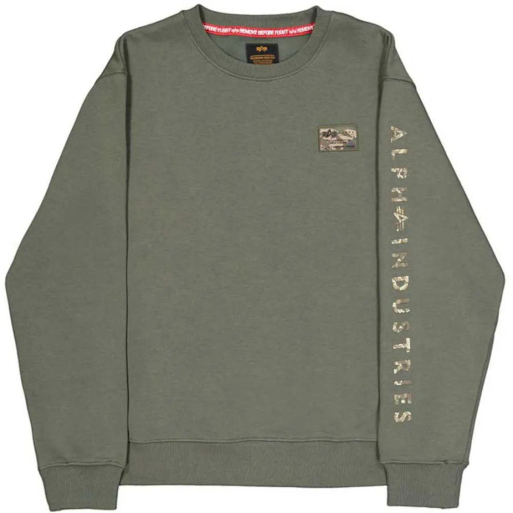 Изнаночная сторона из флиса с начесом добавляет дополнительный слой тепла, что делает ее идеальной для прохладных дней. Выразительный камуфляжный принт из пены на рукавах придает этой толстовке с круглым вырезом уникальный вид, который выделит вас из толпы. Тщательно вышитая этикетка Alpha украшает грудь, добавляя ей первоклассной привлекательности.