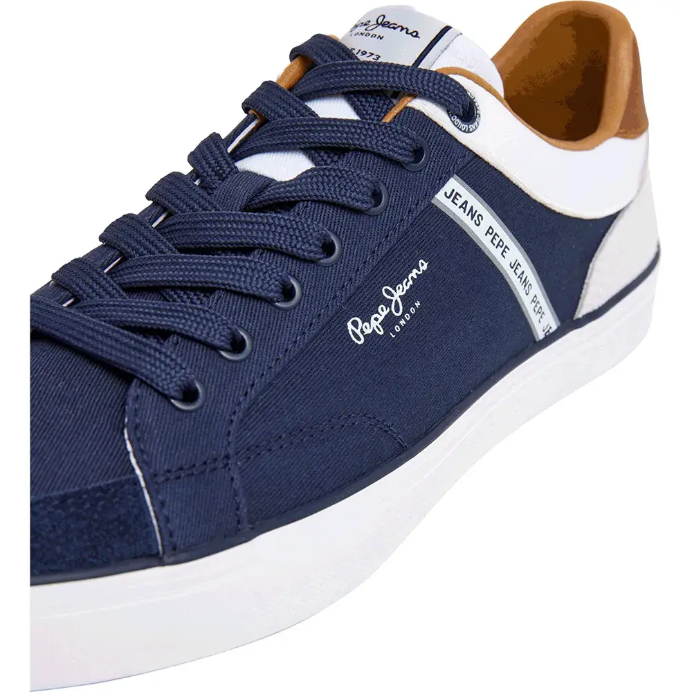 Низкопрофильные вулканизированные теннисные кроссовки Kenton Stage M из экологически чистого тонкого хлопка, удобная термоформованная съемная стелька с пеной двойной плотности, фирменные люверсы, лента с повторяющимся заглавным логотипом и классический логотип сбоку.