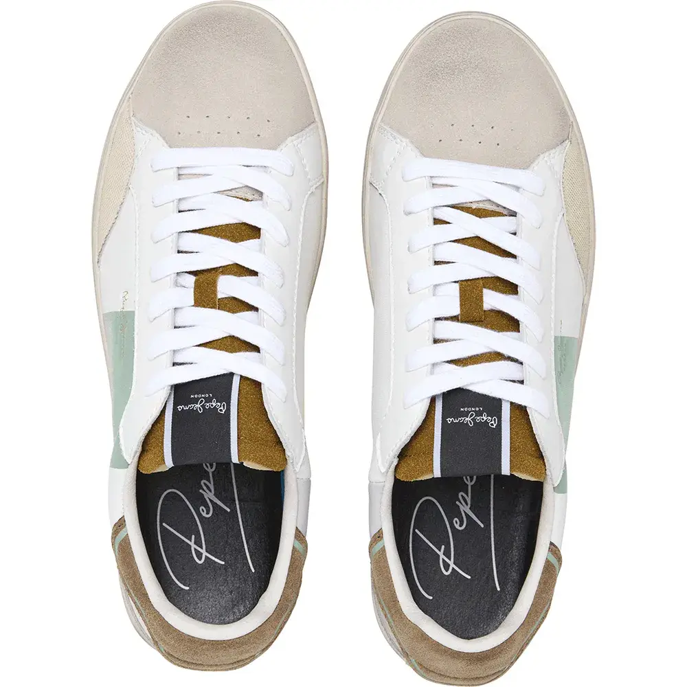 Кроссовки Lane Logo M с цветовыми контрастами, съемной термоформованной стелькой, потертостями в виде состаренных следов на подошве Rubeer и классическим логотипом сбоку.