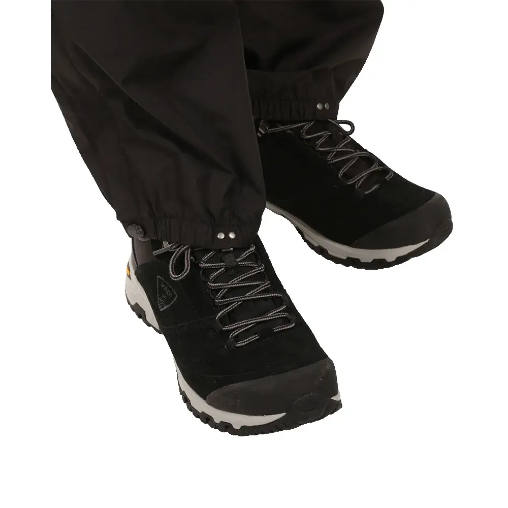 Нижняя часть штанин оснащена застежкой-липучкой, эластичными резиновыми кромками и металлическими крючками, что позволяет легко надевать их поверх походной обуви и крепить.