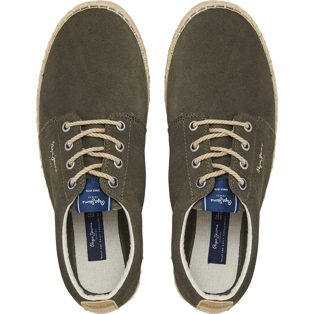 Кроссовки Tourist West с несколькими люверсами, выполненные из цельной коровьей замши с подкладкой из экологически чистого хлопка, логотипом PJL сбоку на пятке, классическим логотипом сбоку, натуральной джутовой веревкой и подошвой из переработанной резины.