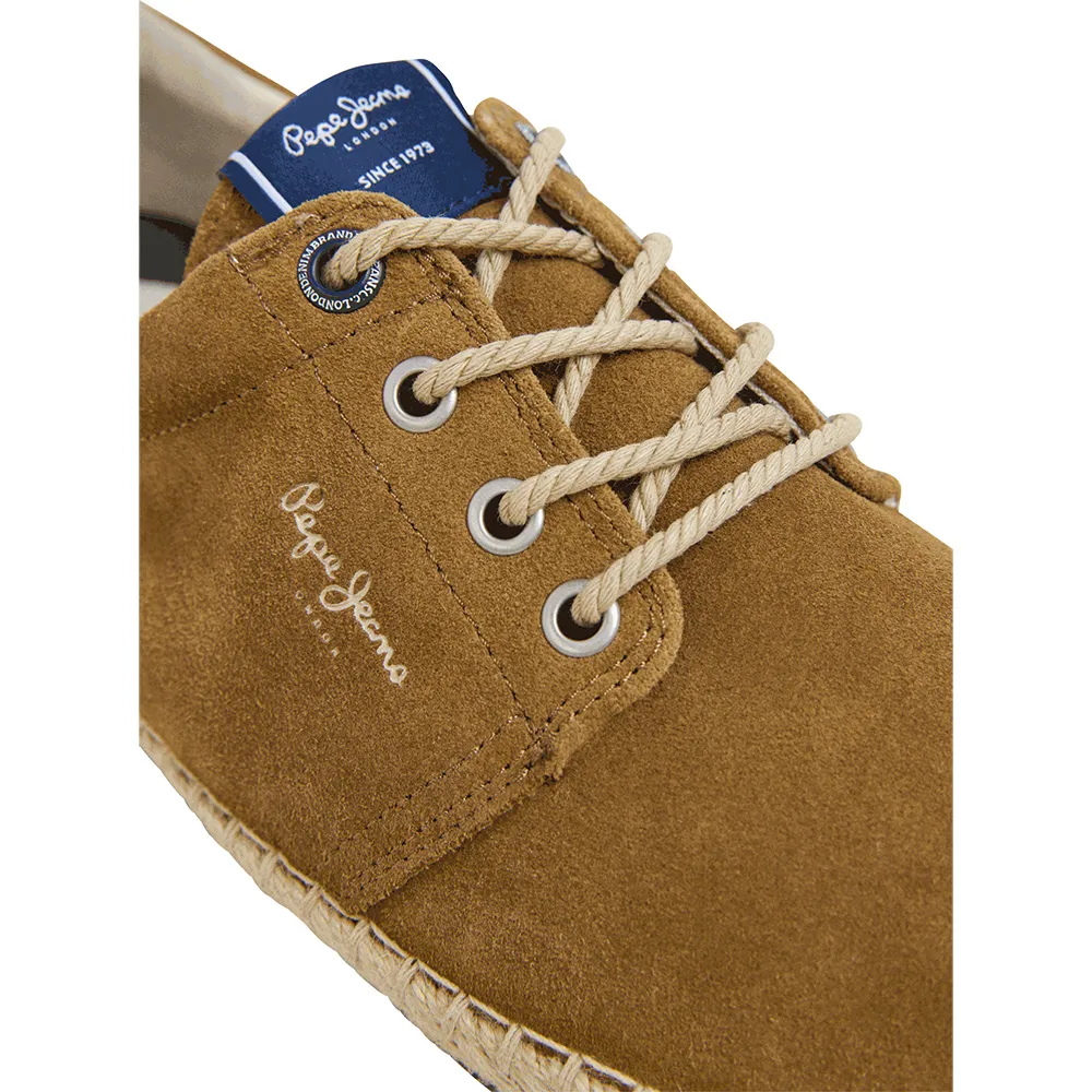 Кроссовки Tourist West с несколькими люверсами, выполненные из цельной коровьей замши с подкладкой из экологически чистого хлопка, логотипом PJL сбоку на пятке, классическим логотипом сбоку, натуральной джутовой веревкой и подошвой из переработанной резины.