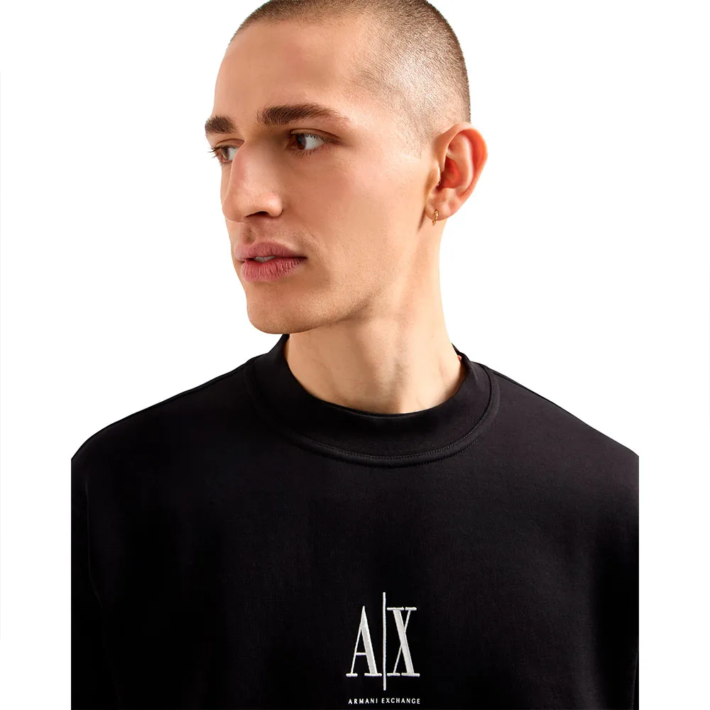 Толстовка с круглым вырезом из эластичной хлопковой ткани с полиэстером и вышитым логотипом по центру спереди.