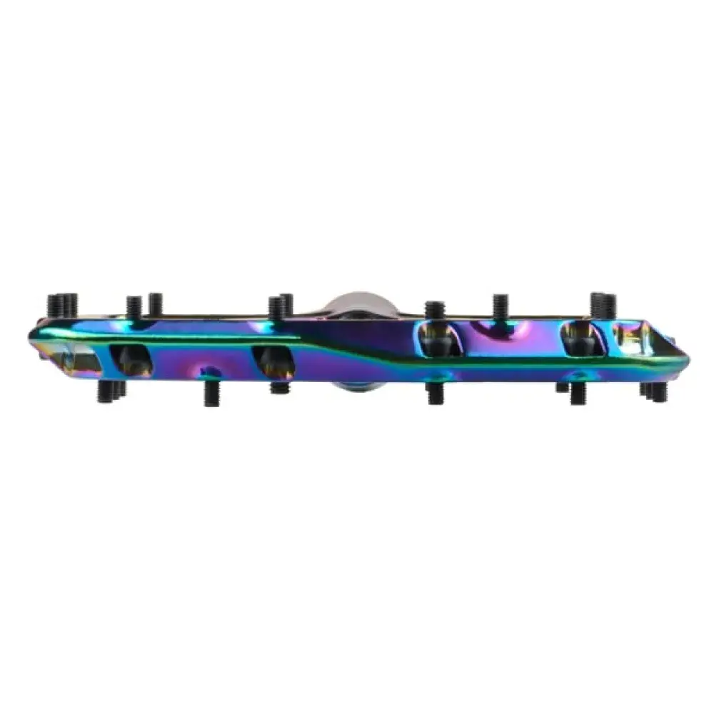 Новая плоская педаль TRIDENT - это сверхнизкопрофильная, очень большая платформенная педаль, предназначенная для прыжков по горам, скоростному спуску или грунту. Корпус из кованого алюминия 6061 имеет ширину 114 мм и толщину 1омм, что обеспечивает большой зазор благодаря скошенным краям. 48 направляющих штифтов обеспечивают превосходное сцепление для максимального контроля и эффективности педалей. Сочетайте его с вашими любимыми липкими ботинками, и вы будете готовы уверенно преодолевать любую местность.