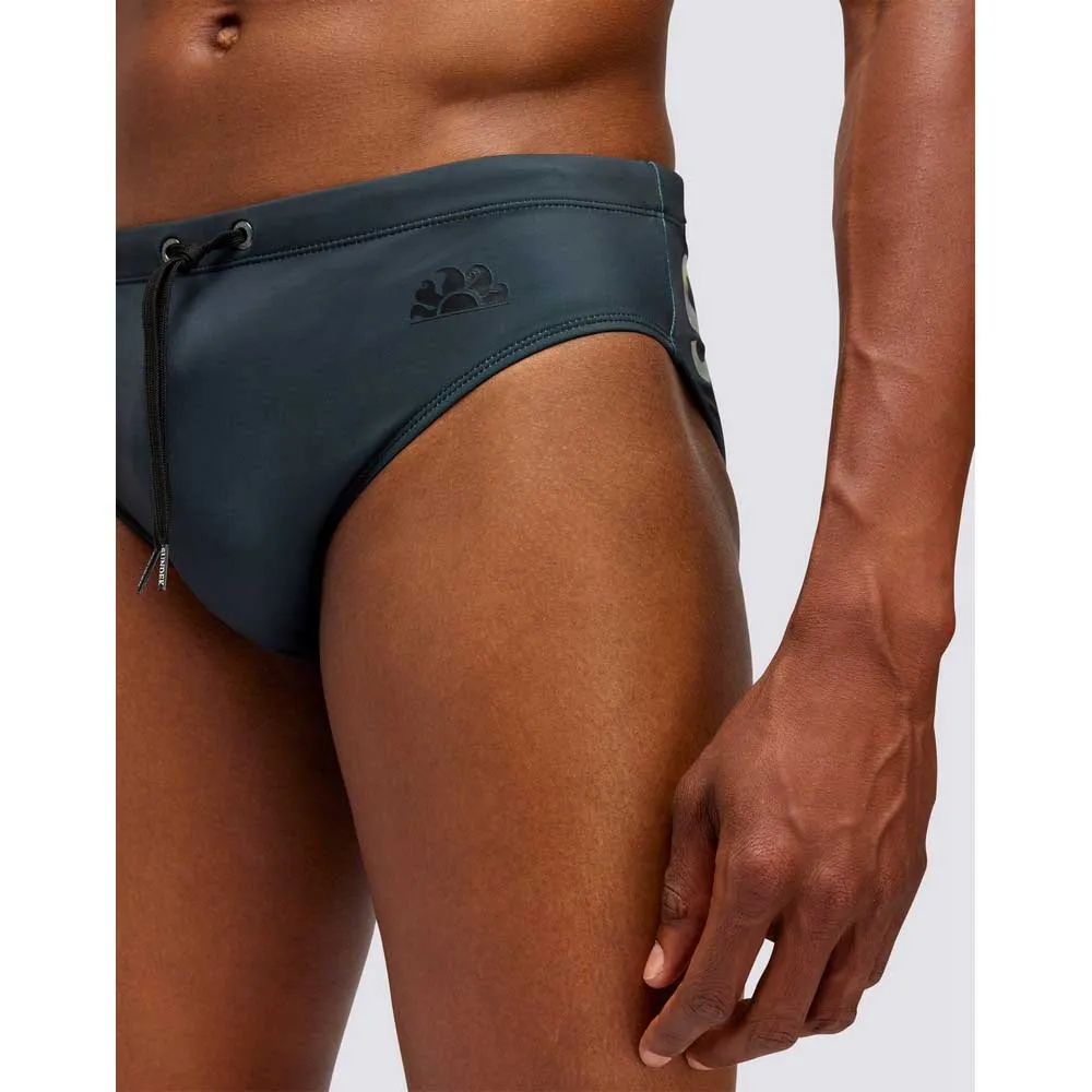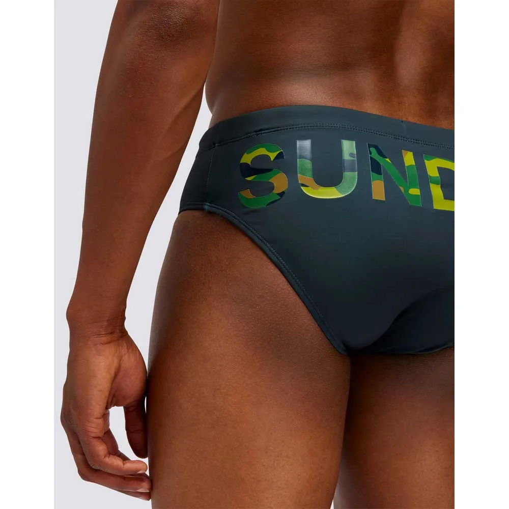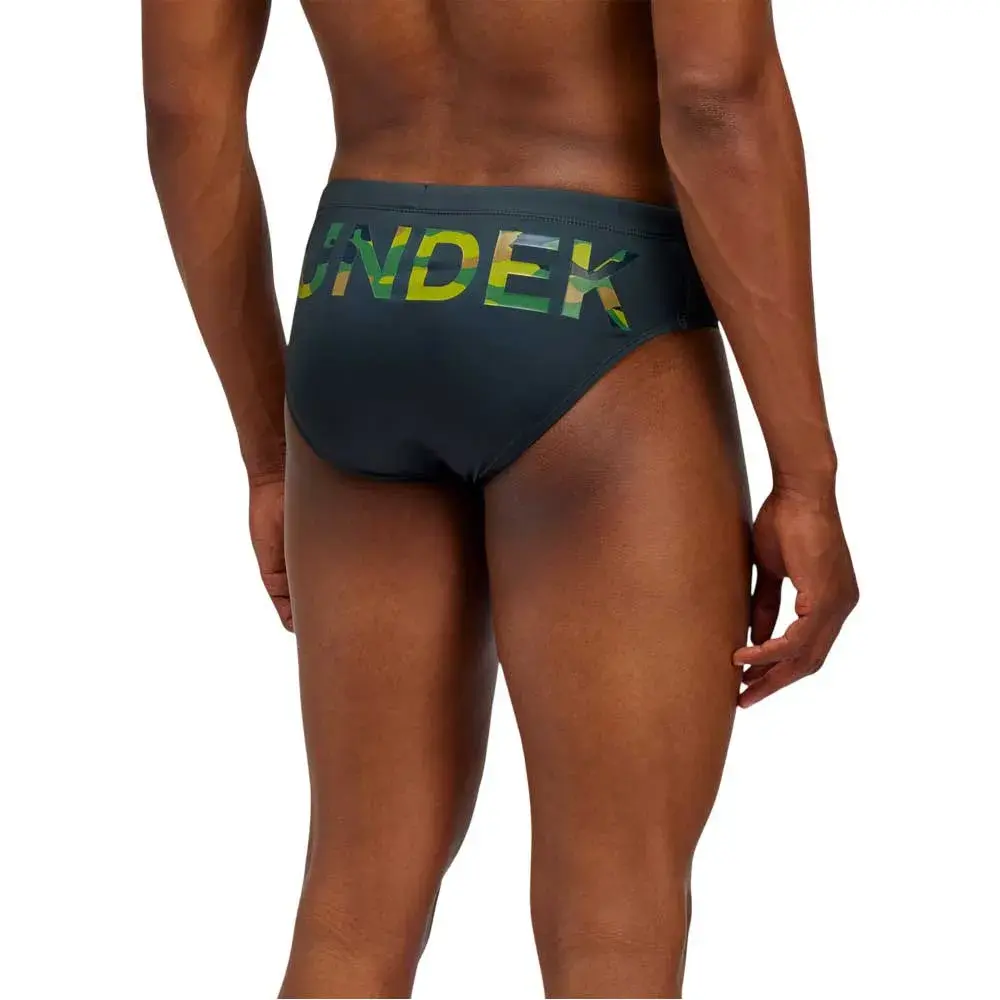 Мужские плавки-шорты с открытой спиной и камуфляжным принтом.