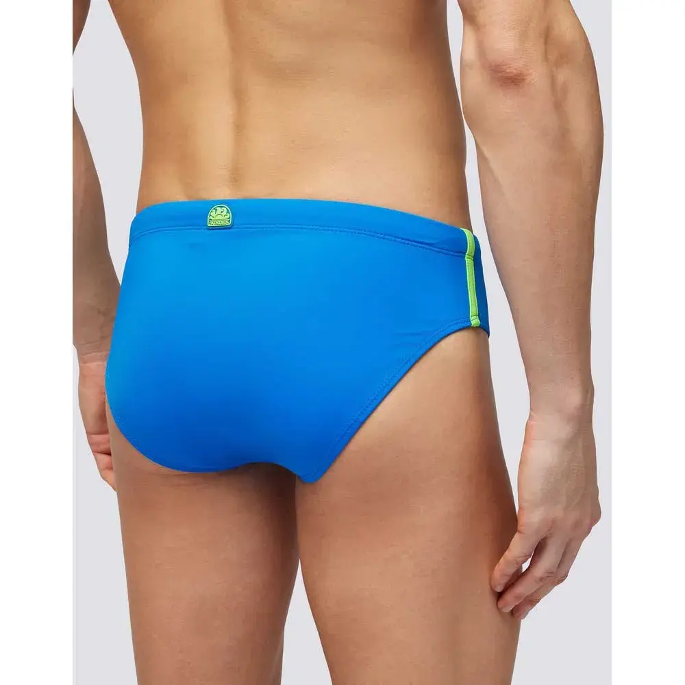 Плавки однотонные с контрастной однотонной боковой резинкой, изготовлены из econyl, произведенного в Италии, экологически устойчивого, прочного и защищающего от ультрафиолета регенерированного материала.