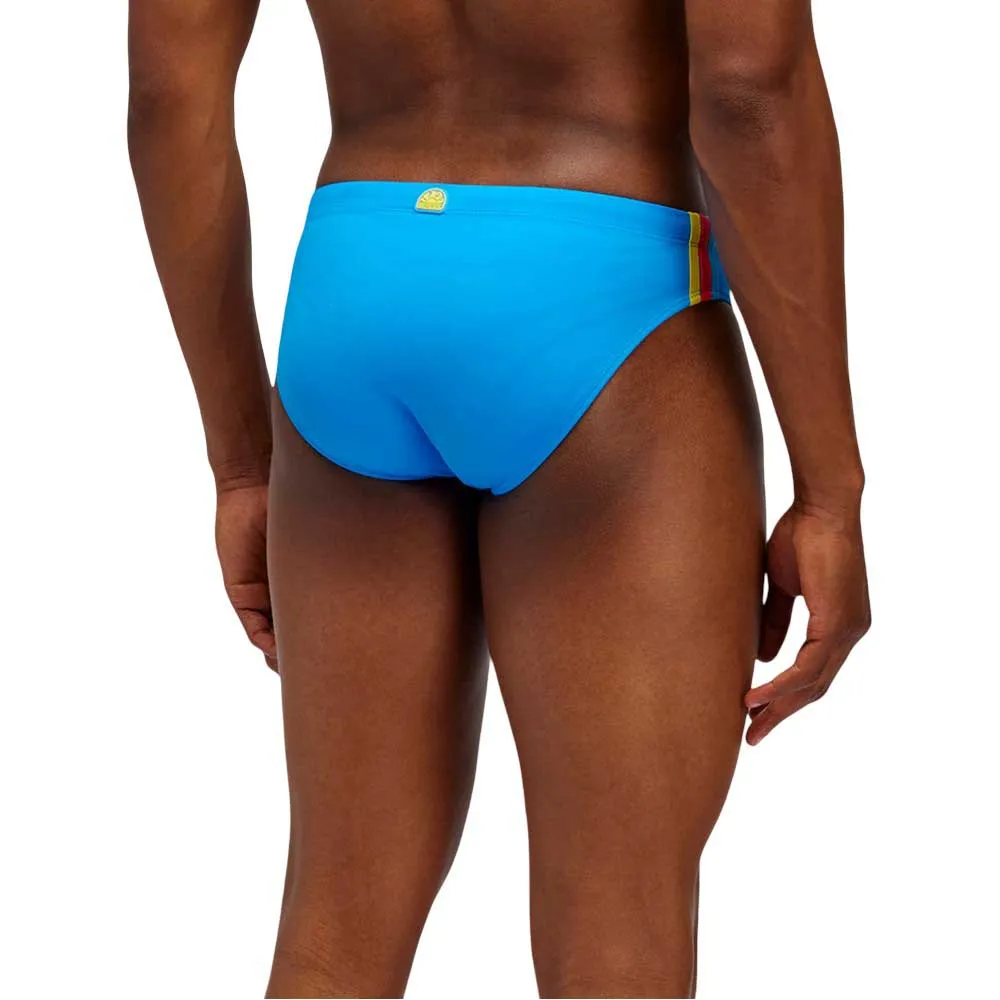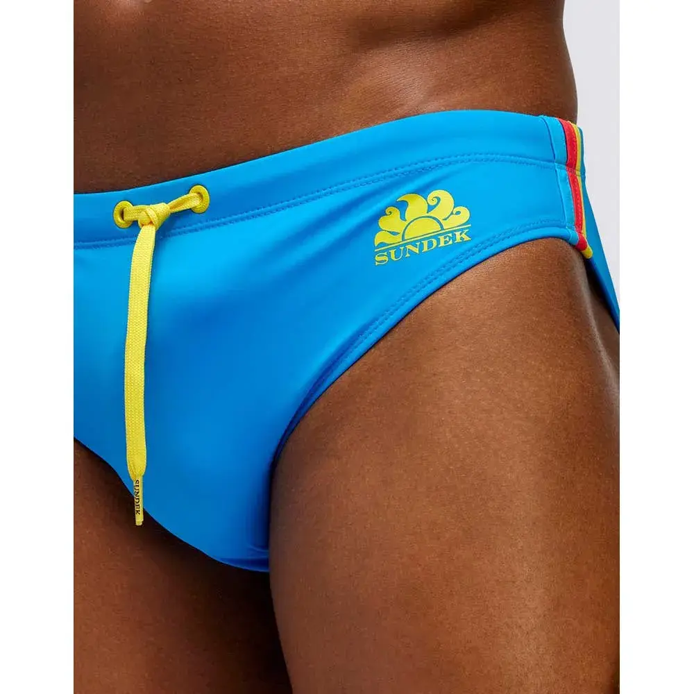 Монохромные плавки-слипы с завязками на шнурке и тремя контрастными цветными полосками по бокам для смелого, функционального образа.