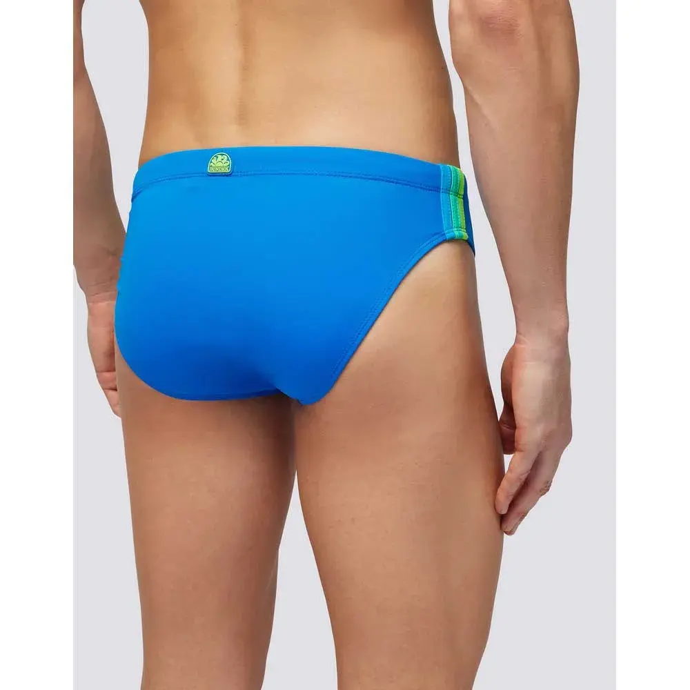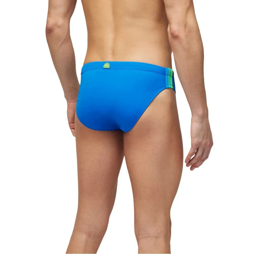 Монохромные плавки-слипы с завязками на шнурке и тремя контрастными цветными полосками по бокам для смелого, функционального образа.