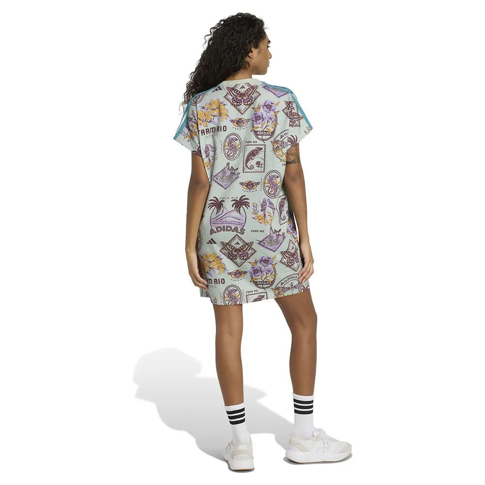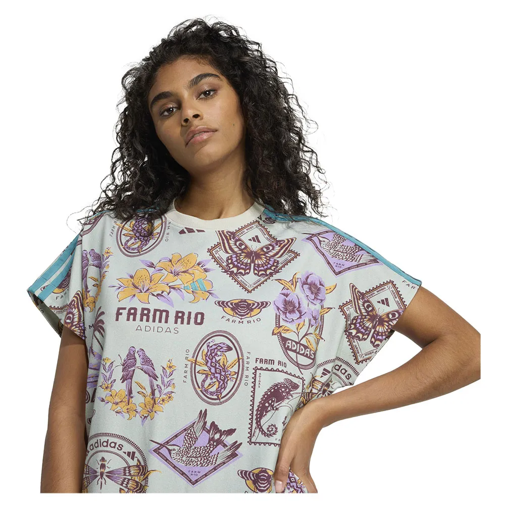 Отправьтесь в полет в этом платье adidas x FARM, вдохновленном яркой символикой бабочек и уверенностью латиноамериканской женственности.
