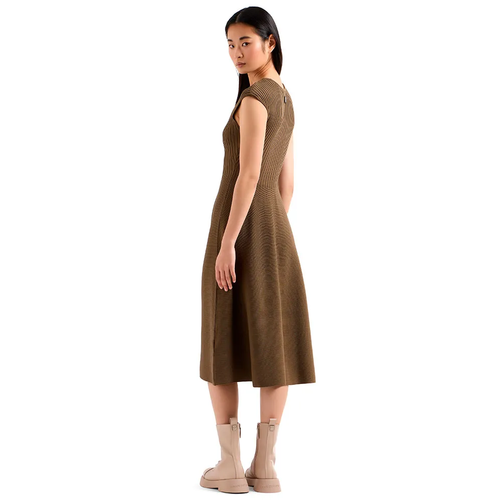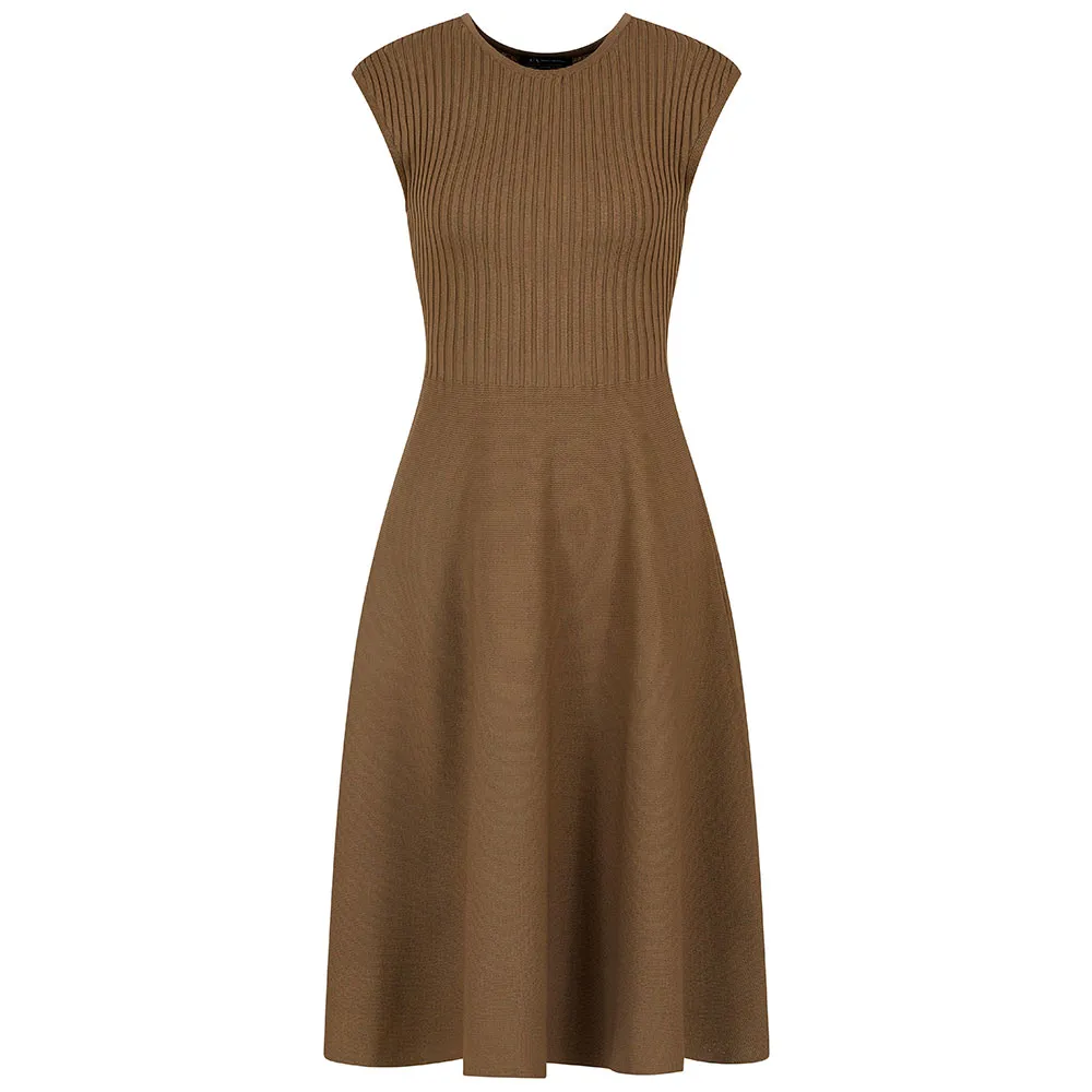 Облегающее трикотажное платье миди с круглым вырезом и рукавами-чашками.