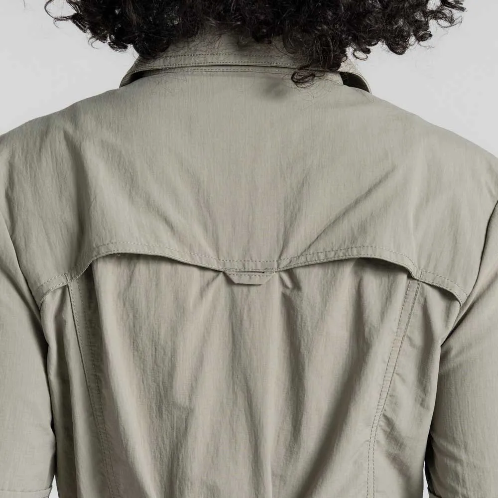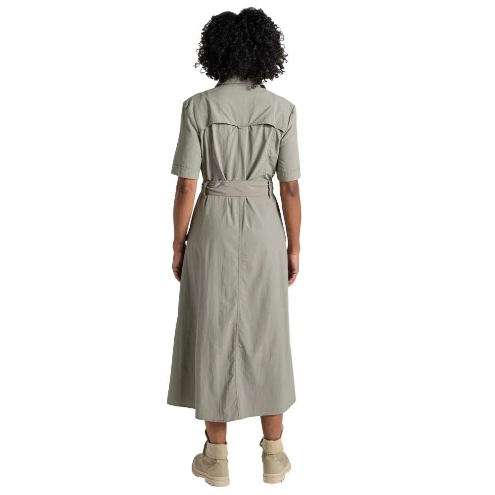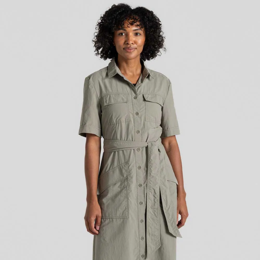 Это солнцезащитное дорожное платье создано для эффективной работы. Классический фасон с застежкой на пуговицы спереди и удлинённым подолом, изготовленное из прочной, быстросохнущей ткани рипстоп, делает его идеальным выбором для дальних путешествий. Технология NosiLife, отпугивающая насекомых и устраняющая запахи, помогает коже оставаться прохладной и защищённой в течение всего дня. В комплекте с поясом и 5 карманами.
