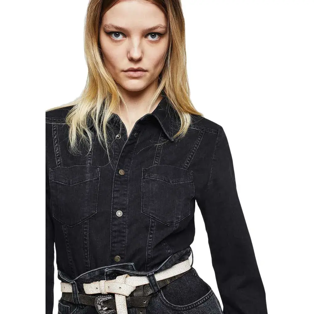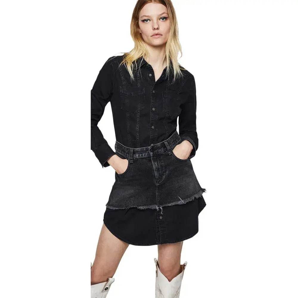 Это платье-рубашка изготовлено из плотного денима с эффектом потертости.