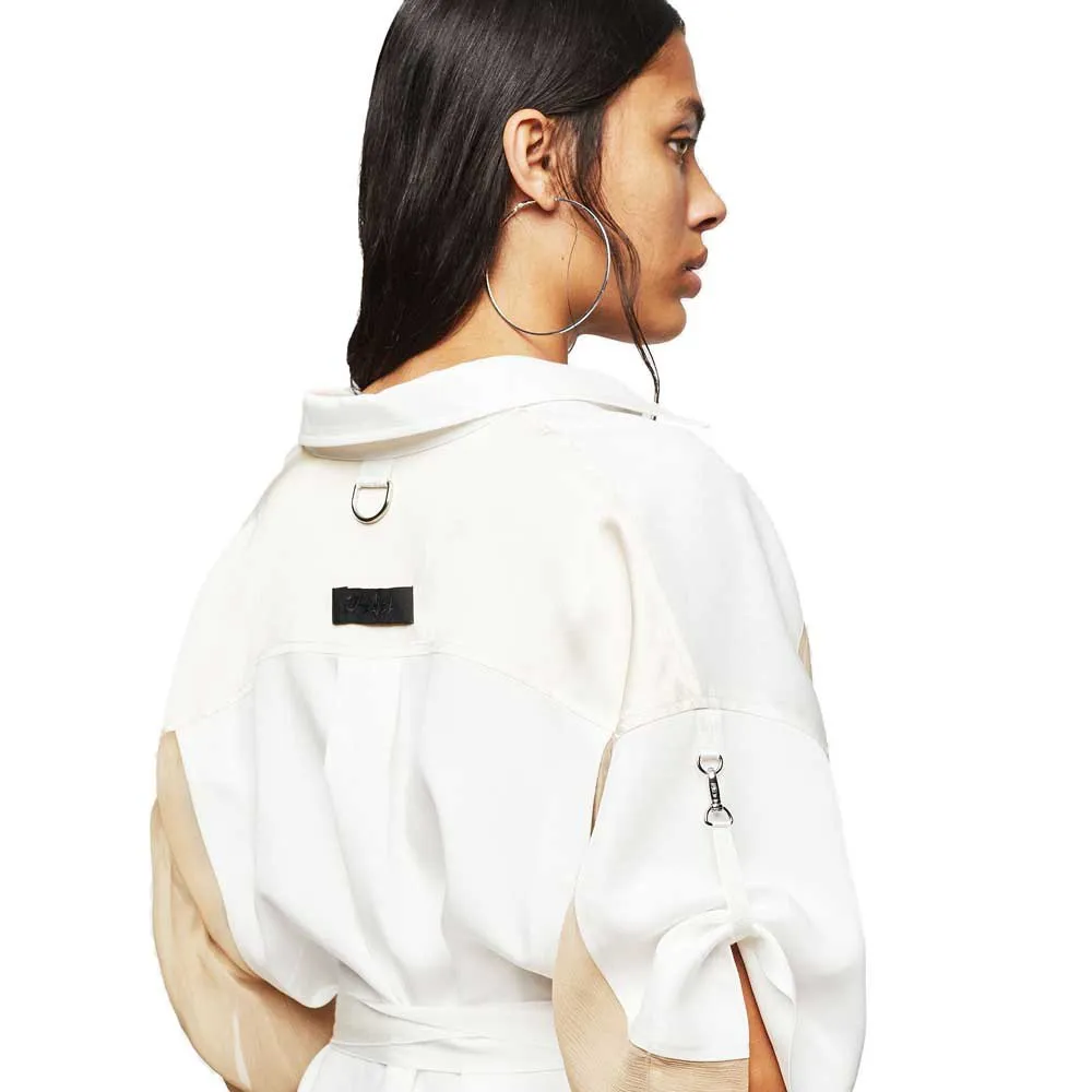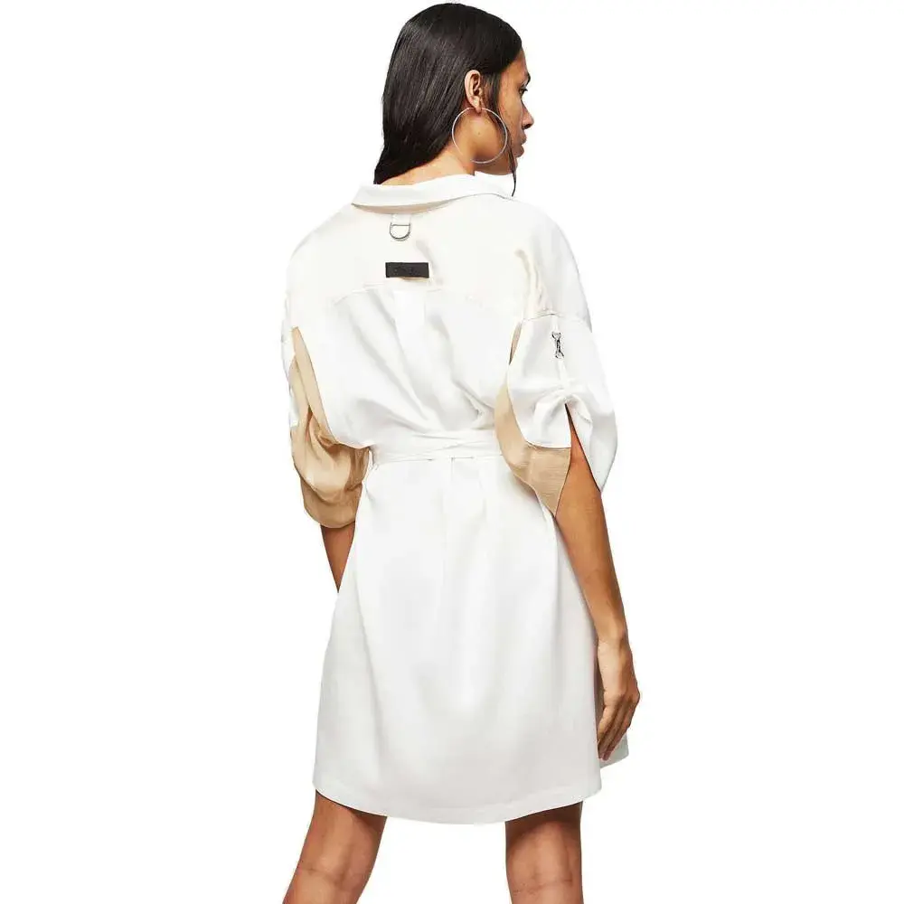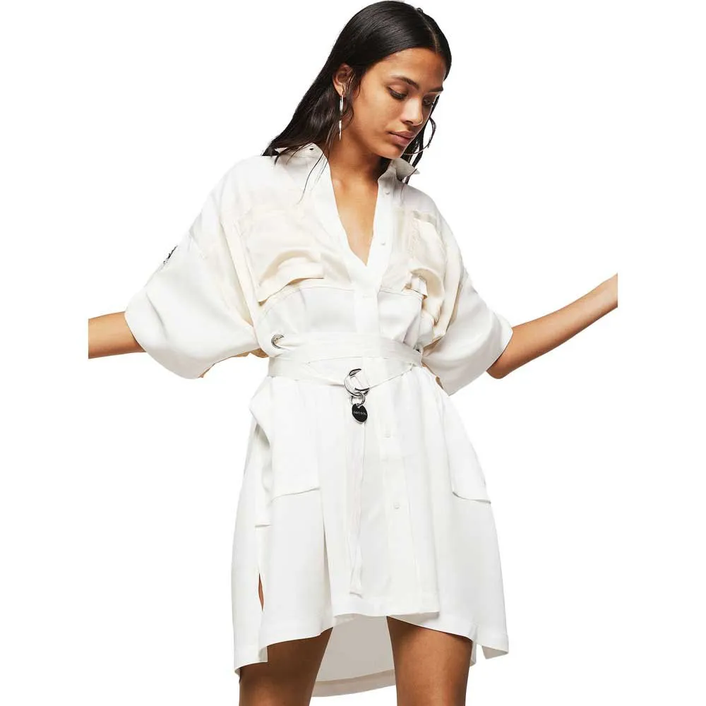 Это платье-рубашка выполнено из сочетания контрастных фактур: