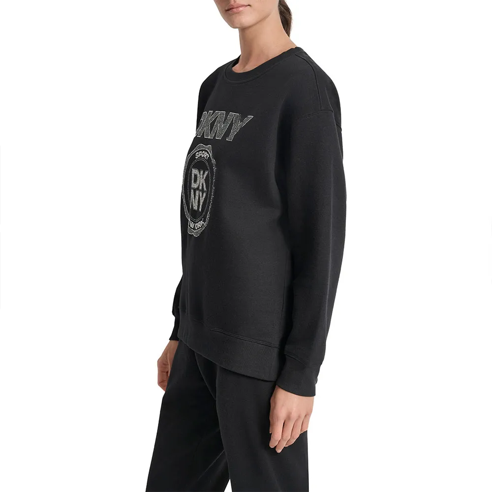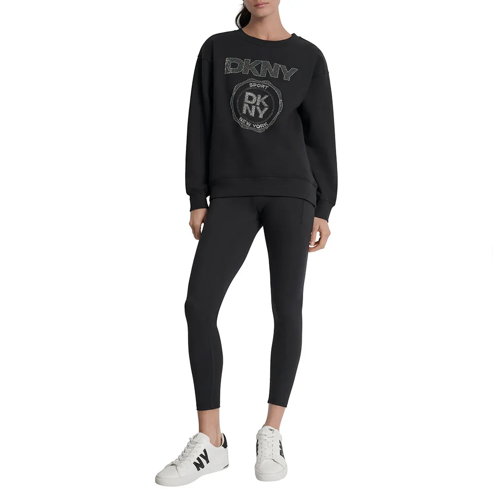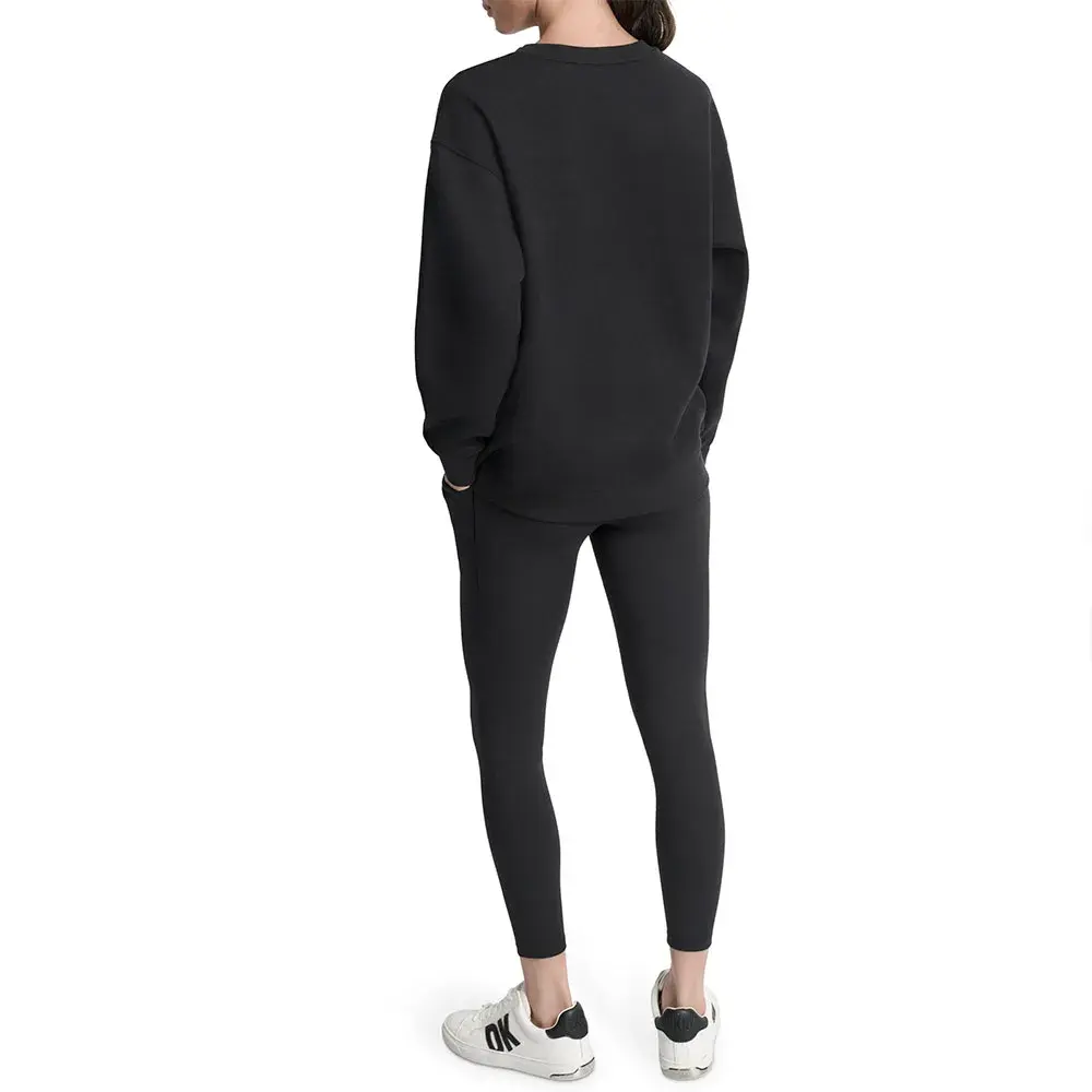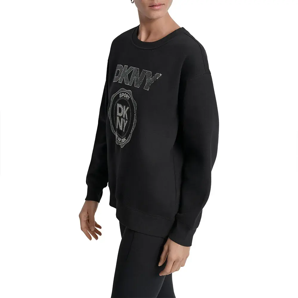 Эта толстовка без капюшона и без молнии предлагает чистую, минималистичную эстетику, которая идеально подходит для ношения в качестве слоев или самостоятельно. Отсутствие этих деталей позволяет сосредоточиться на гладком силуэте и культовом логотипе DKNY, создавая изысканный и элегантный образ.