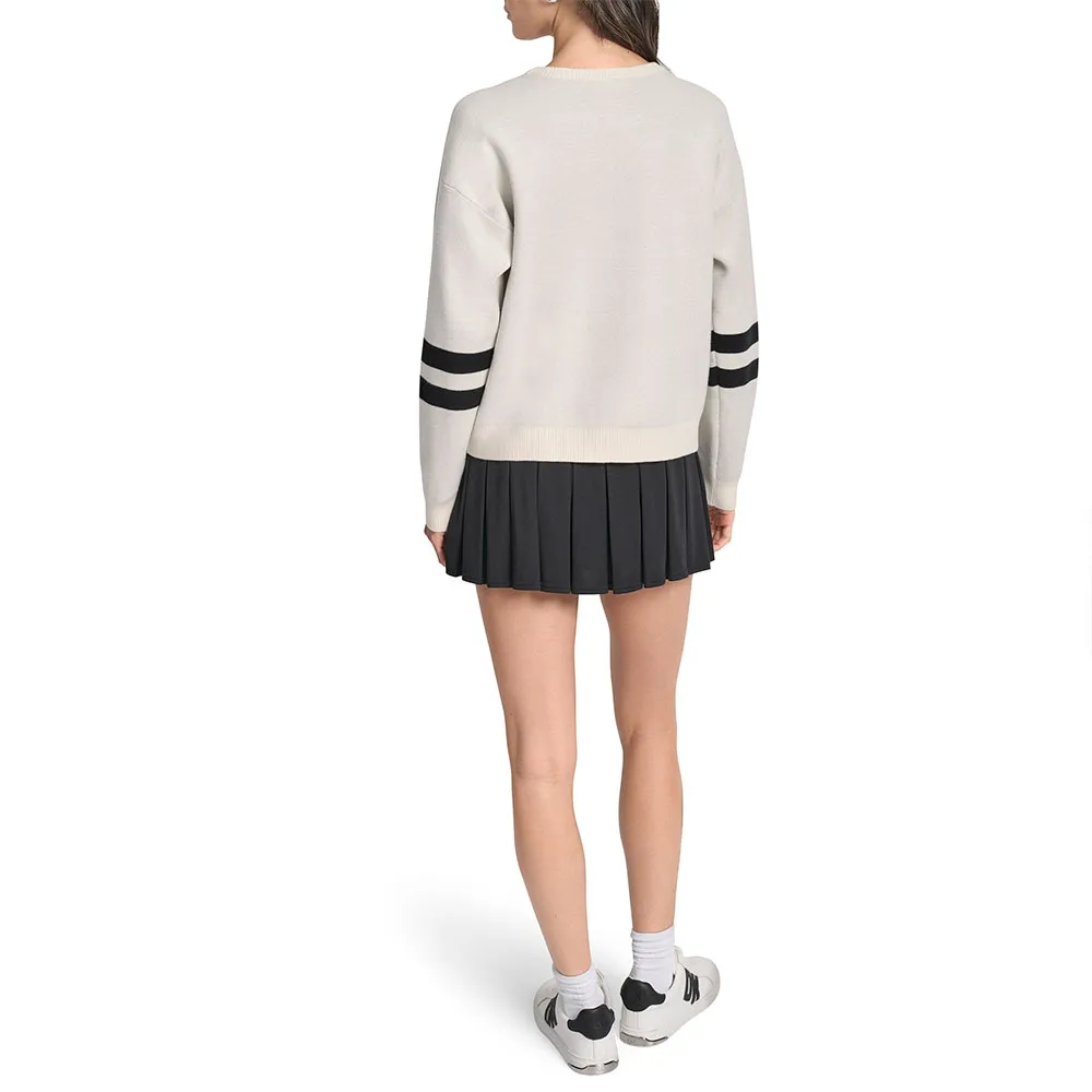 Свитшот DKNY Varsity с логотипом и полосками, созданный для современной женщины, ценящей моду и функциональность, обеспечивает непревзойденный комфорт без ущерба для стиля. Мягкая высококачественная ткань красиво драпируется и невероятно приятна к телу, обеспечивая комфорт в течение всего дня. Независимо от того, сочетаете ли вы его с джинсами, леггинсами или юбкой, эта толстовка легко преобразит любой наряд.
