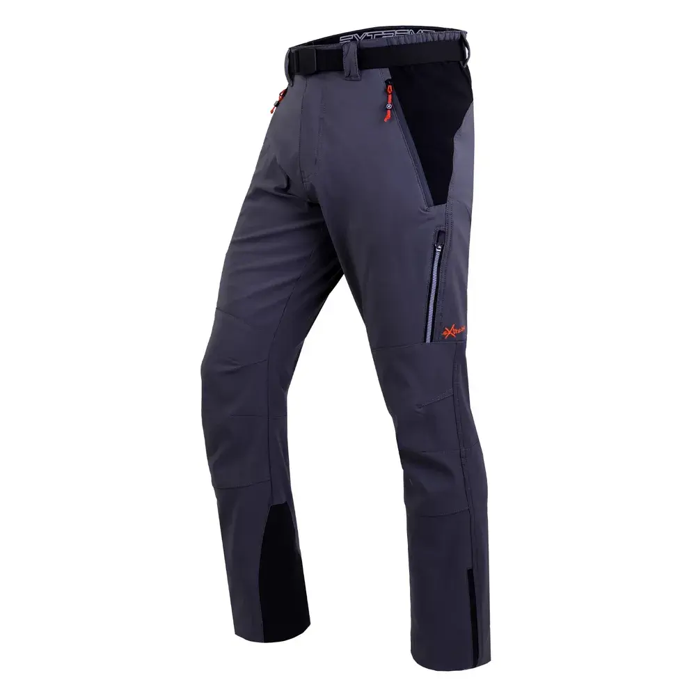 Полуэластичный пояс с двойной застежкой на кнопки и регулируемым эластичным поясом, три кармана на молнии, вытачки и специальная ткань внизу, молния и регулируемая резинка внизу, вышитый логотип.
