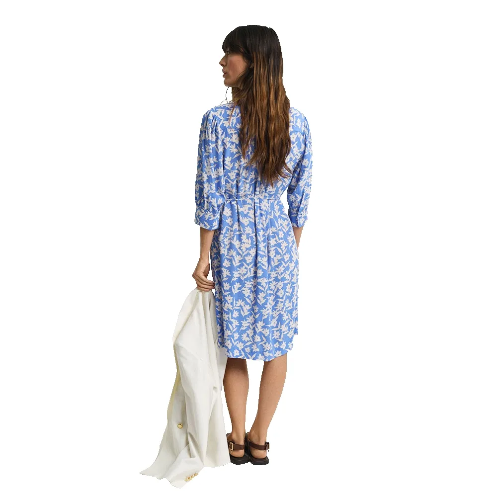 Платье длиной чуть выше колен и включает в себя продуманные детали, такие как присборенные рукава, пуговицы из переработанного полиэстера и пояс на талии, чтобы подчеркнуть вашу фигуру.
