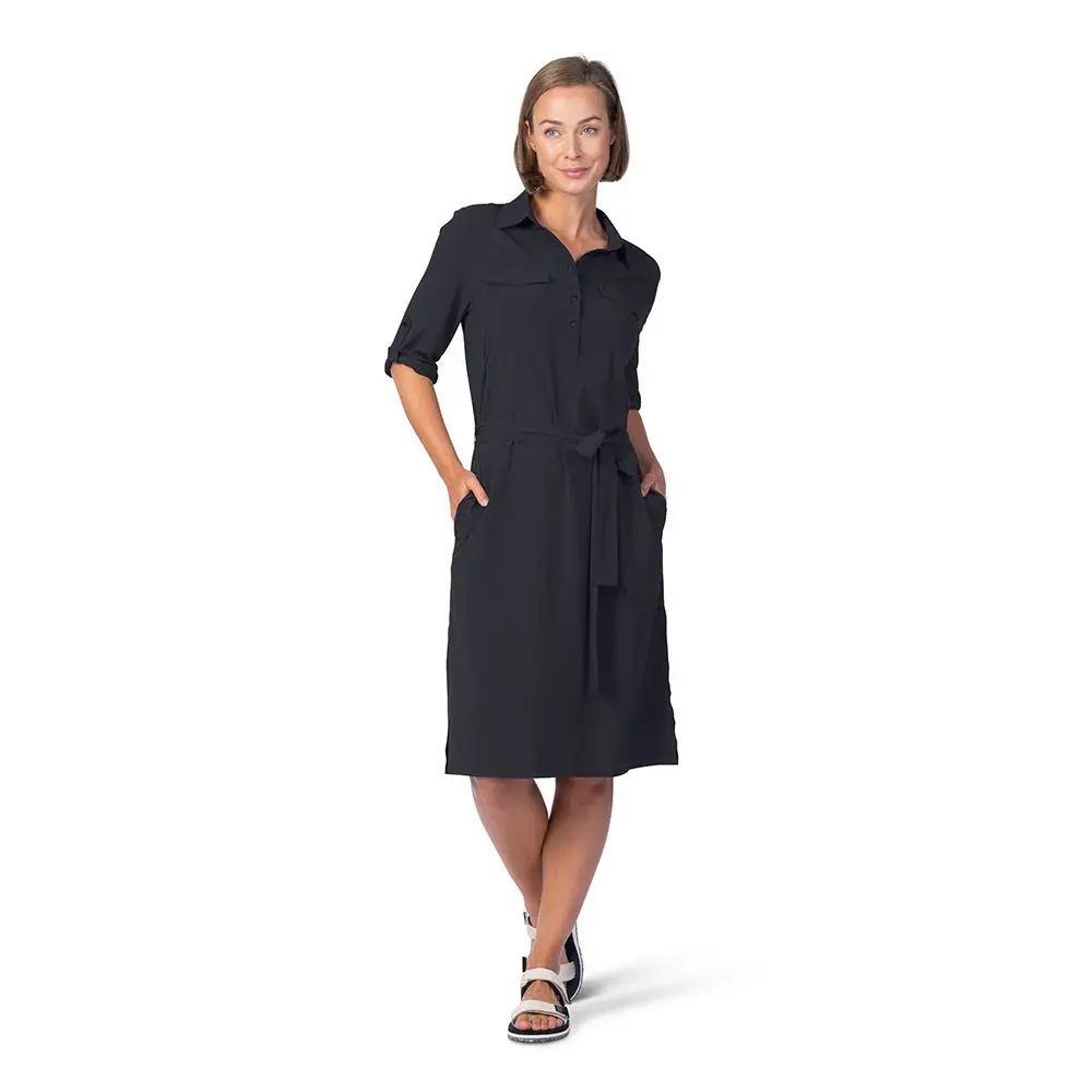 Это элегантное платье-рубашка длиной выше колена с поясом изготовлено из функционального, высокоэластичного и дышащего материала AFT Stretch.