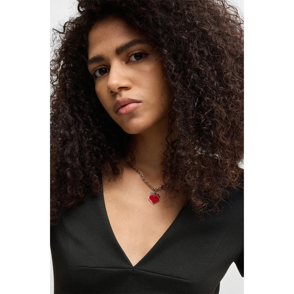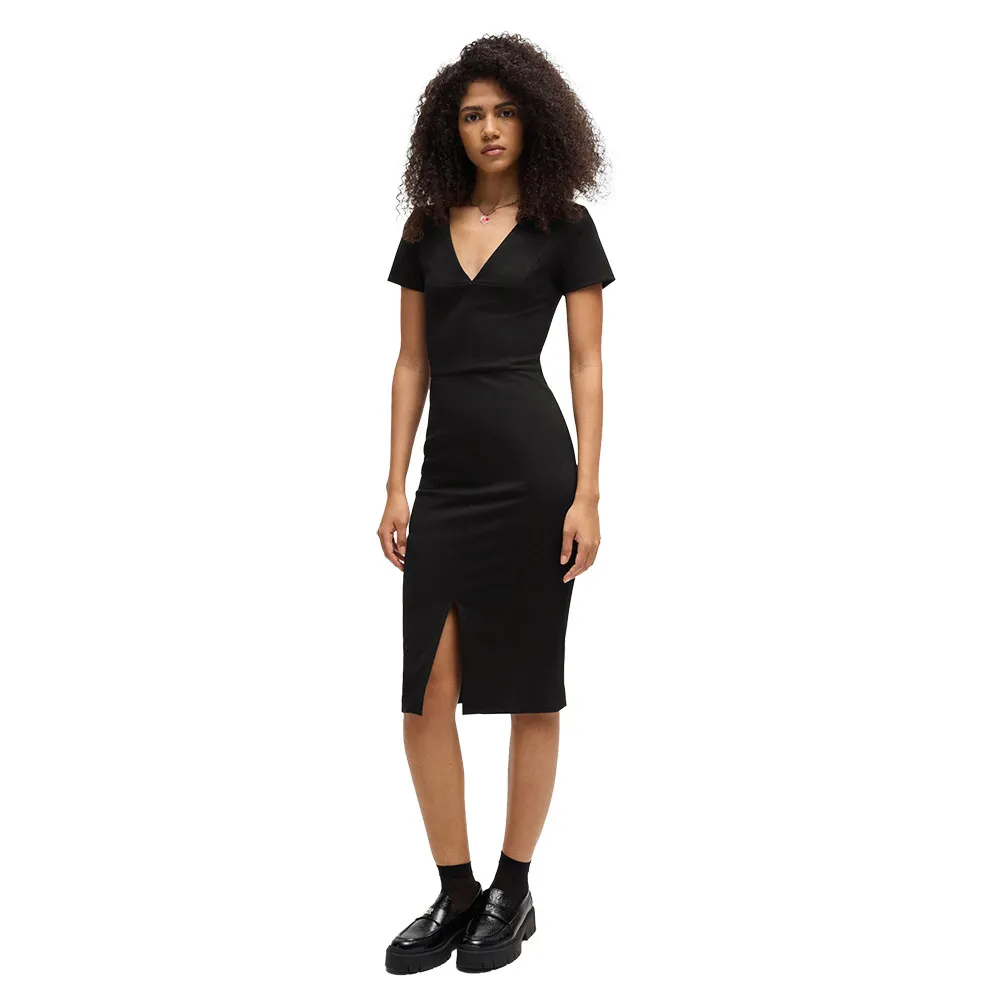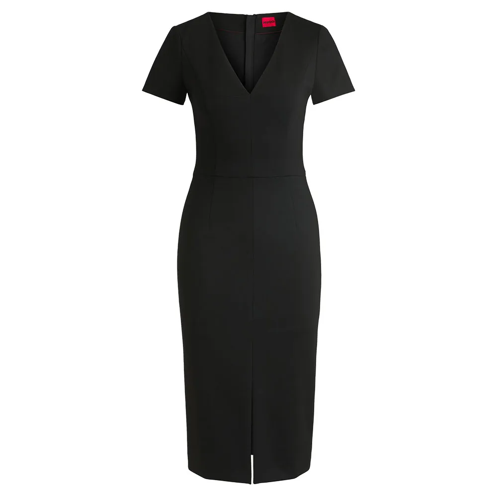 Облегающее деловое платье / V-образный вырез / Длина миди / Застежка-молния по центру спины с пуллером Hugo.