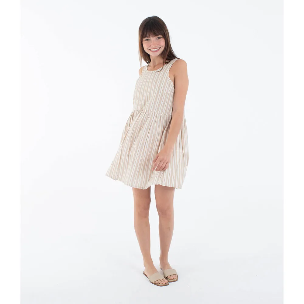 Достигните новых высот стиля и комфорта в элегантном платье HURLEY New Heights. Это воздушное льняное платье идеально подходит для теплых дней и теплых ночей, предлагая свободный крой, который прекрасно подчеркивает вашу фигуру. Безрукавка и короткая длина создают игривый, кокетливый силуэт, а классические полоски добавляют нотку вневременной привлекательности.