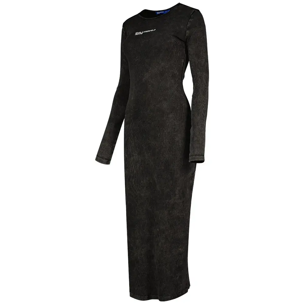 Это облегающее трикотажное платье имеет элегантный круглый вырез горловины, украшенный культовым вышитым логотипом KARL LAGERFELD JEANS, который добавляет нотку уличного стиля.