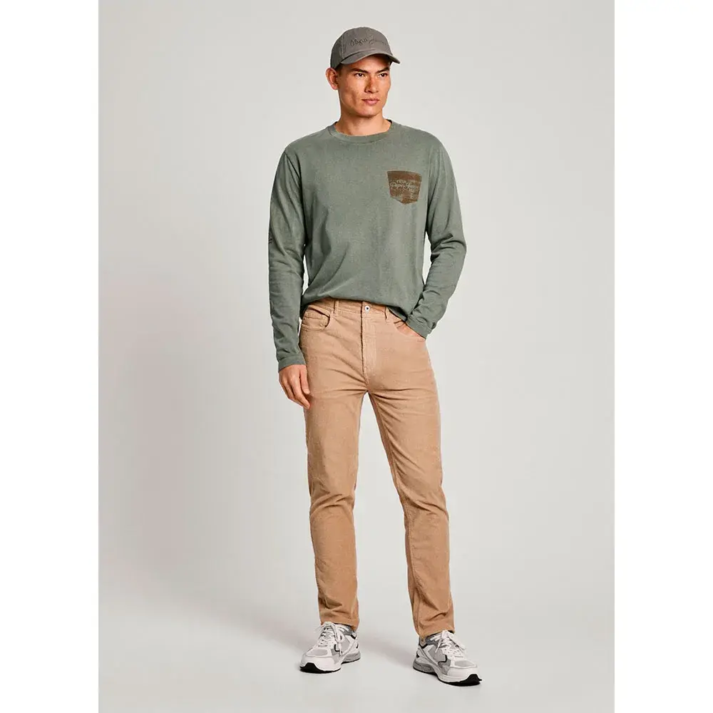 Узкие брюки с пятью карманами из легкой вельветовой ткани.