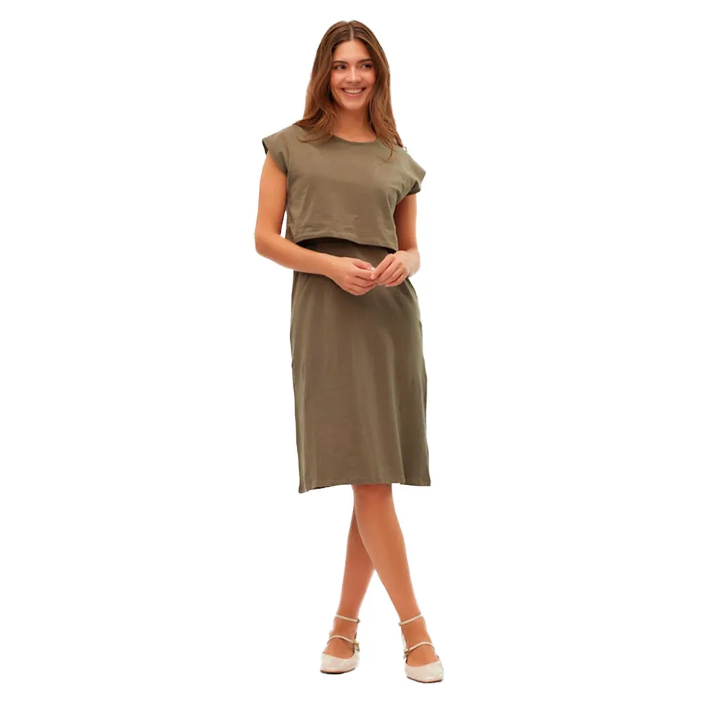- Тип продукта: платье - Вырез горловины: круглый вырез - Рукав: короткий рукав - Длина/размер: до колена - Дополнительные детали: функция кормления со скрытым слоем для кормления - Крой: стандартный.