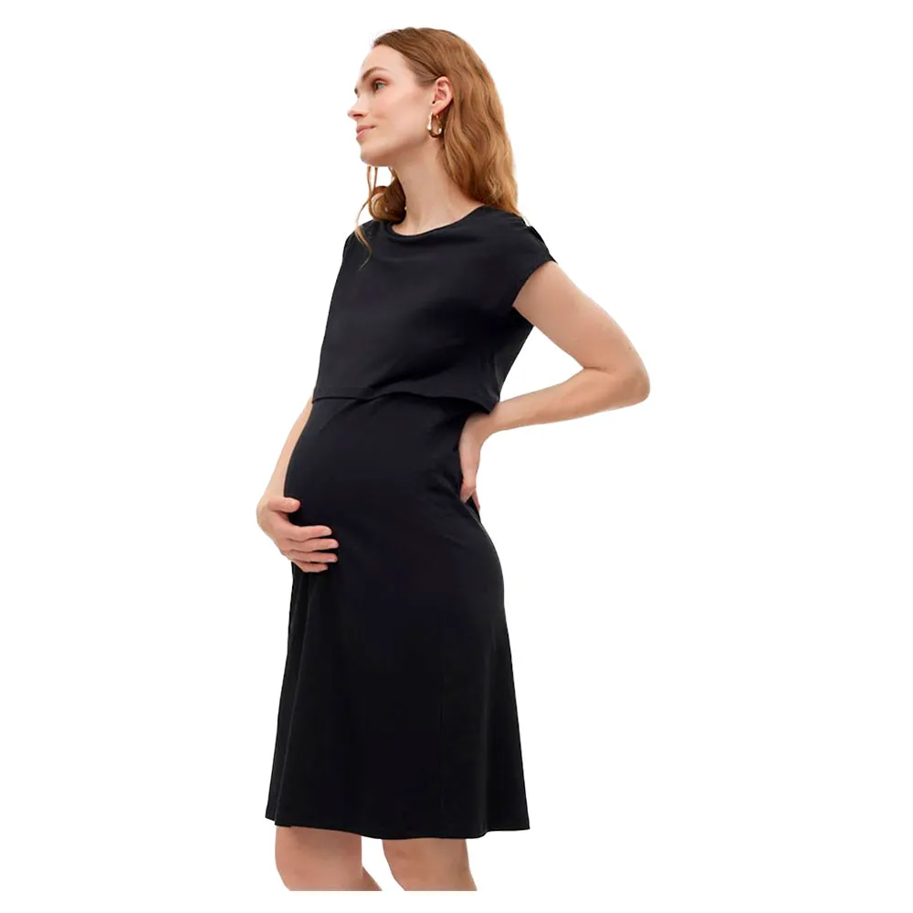 - Тип продукта: платье - Вырез горловины: круглый вырез - Рукав: короткий рукав - Длина/размер: до колена - Дополнительные детали: функция кормления со скрытым слоем для кормления - Крой: стандартный.
