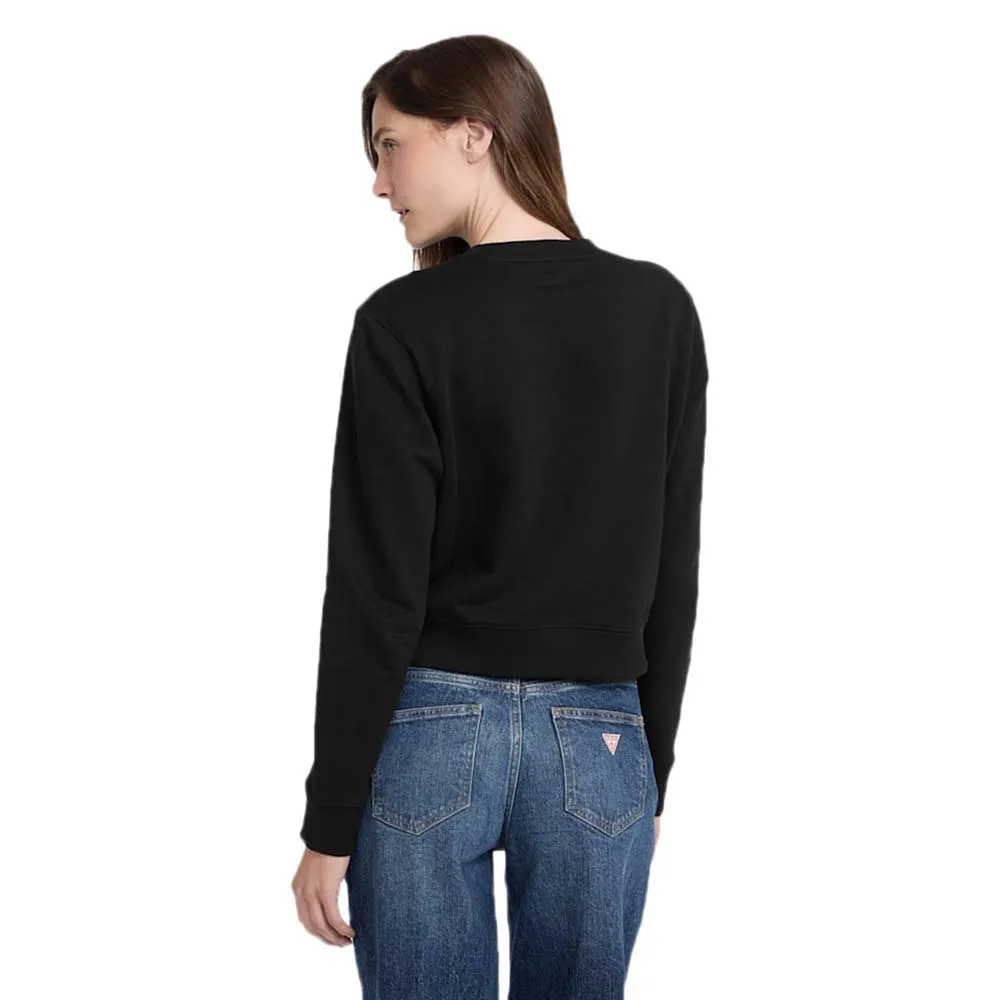 Укороченная толстовка с круглым вырезом и объемной вышивкой GUESS JEANS. Изготовлена из нашей фирменной смеси органического хлопка.