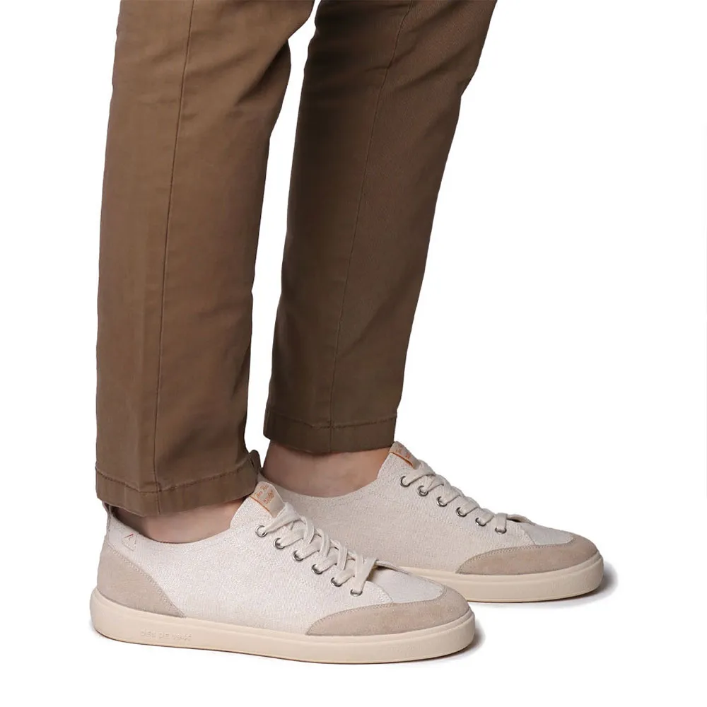 Эти мужские кроссовки на шнуровке изготовлены из хлопчатобумажной ткани и оснащены резиновой подошвой.