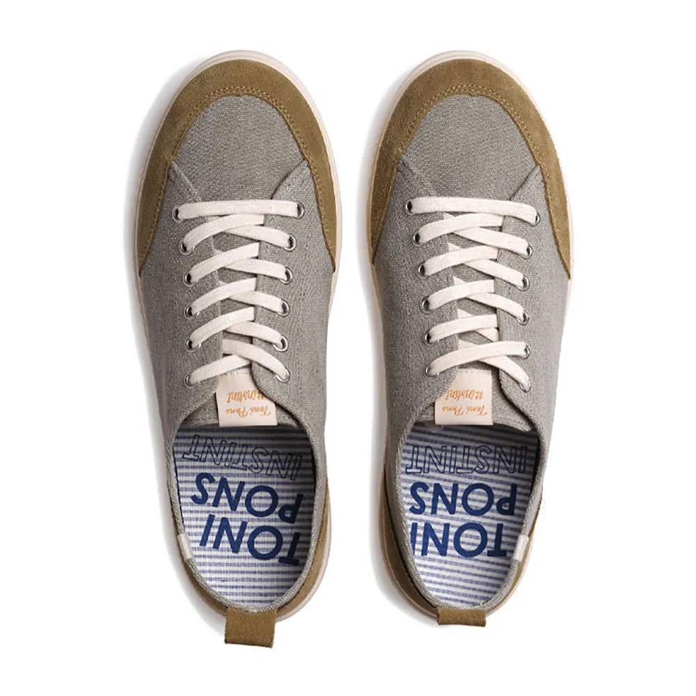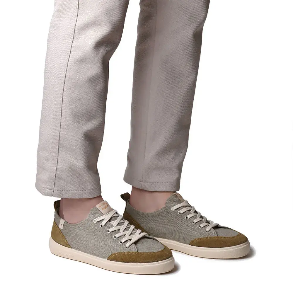 Эти мужские кроссовки на шнуровке изготовлены из хлопчатобумажной ткани и оснащены резиновой подошвой.